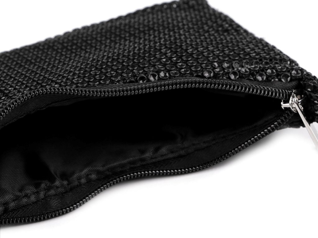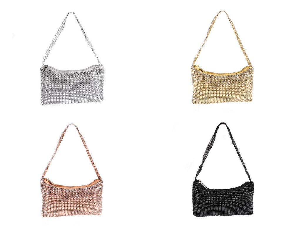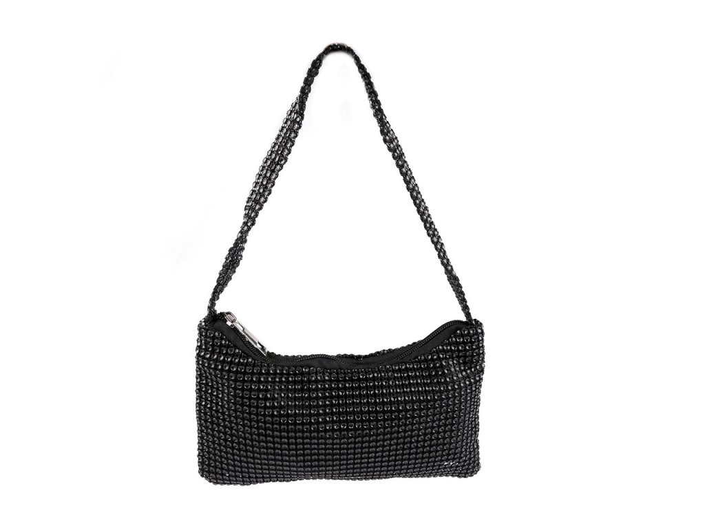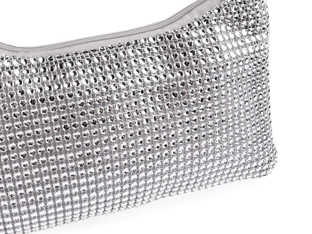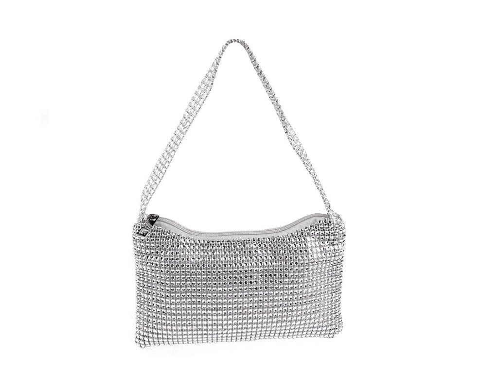 Elegantní společenská kabelka se zajímavě třpytí. Uzavírá se na zip, má ucho do ruky. Potěší vás svou malou hmotností. Uvnitř je zpevněná polyesterovou podšívkou.