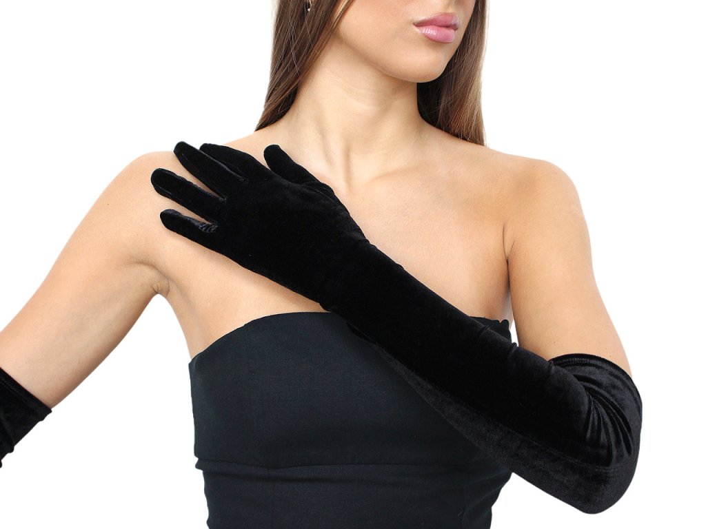 Dlouhé sametové rukavice jsou díky své jednoduchosti velice noblesní. Dodají finální šmrnc vaší róbě. Využijete je především na plesy, do divadla a na společenské večírky. Kvalitní elastický samet má se přizpůsobí každé ruce.