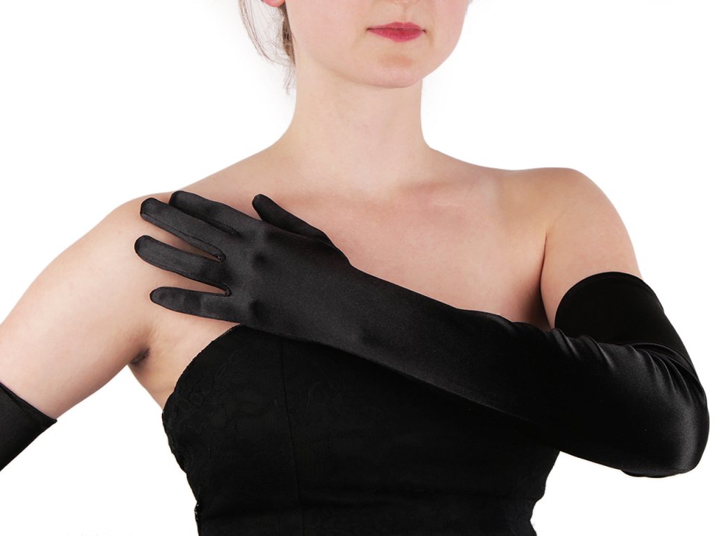 Extra dlouhé saténové rukavice jsou velice noblesní. Dodají finální tečku vaší róbě. Využijete je především na plesy, do divadla a na společenské večírky. Kvalitní elastický satén má jemný lesk, přizpůsobí se každé ruce.