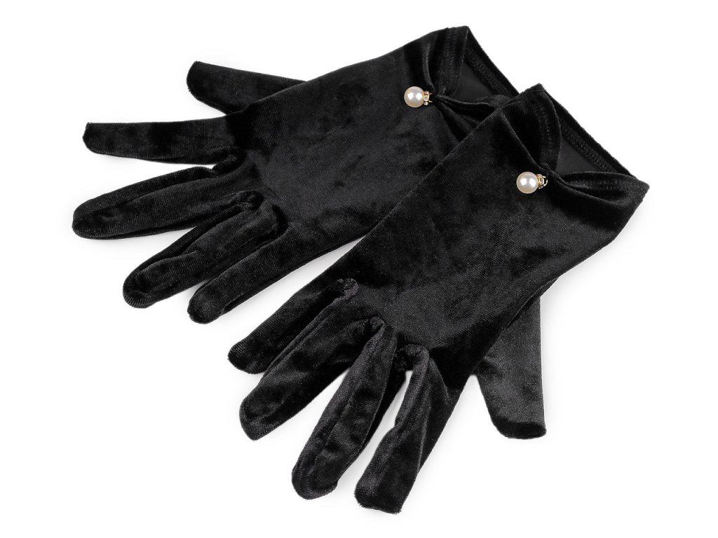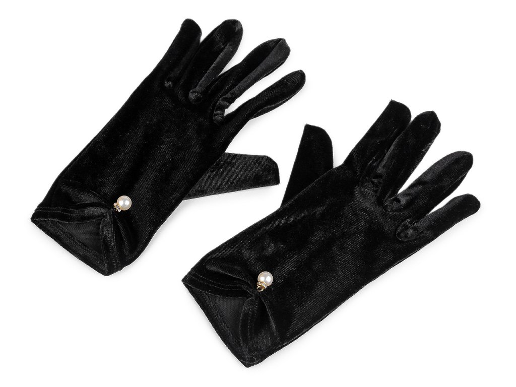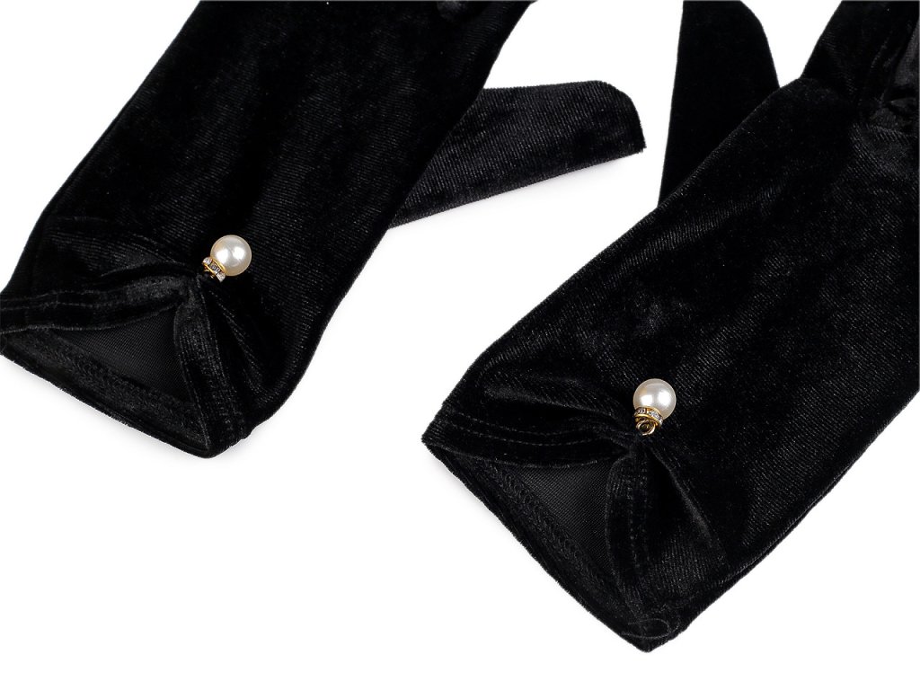Sametové společenské rukavice využijete na ples nebo na čaj o páté, skvěle doplní i maškarní kostým nebo stylovou retro párty. Jsou velice elegantní, ozdobené přívěskem perly s rondelkou s broušenými kamínky. Jejich krátký střih je moderní a praktický.