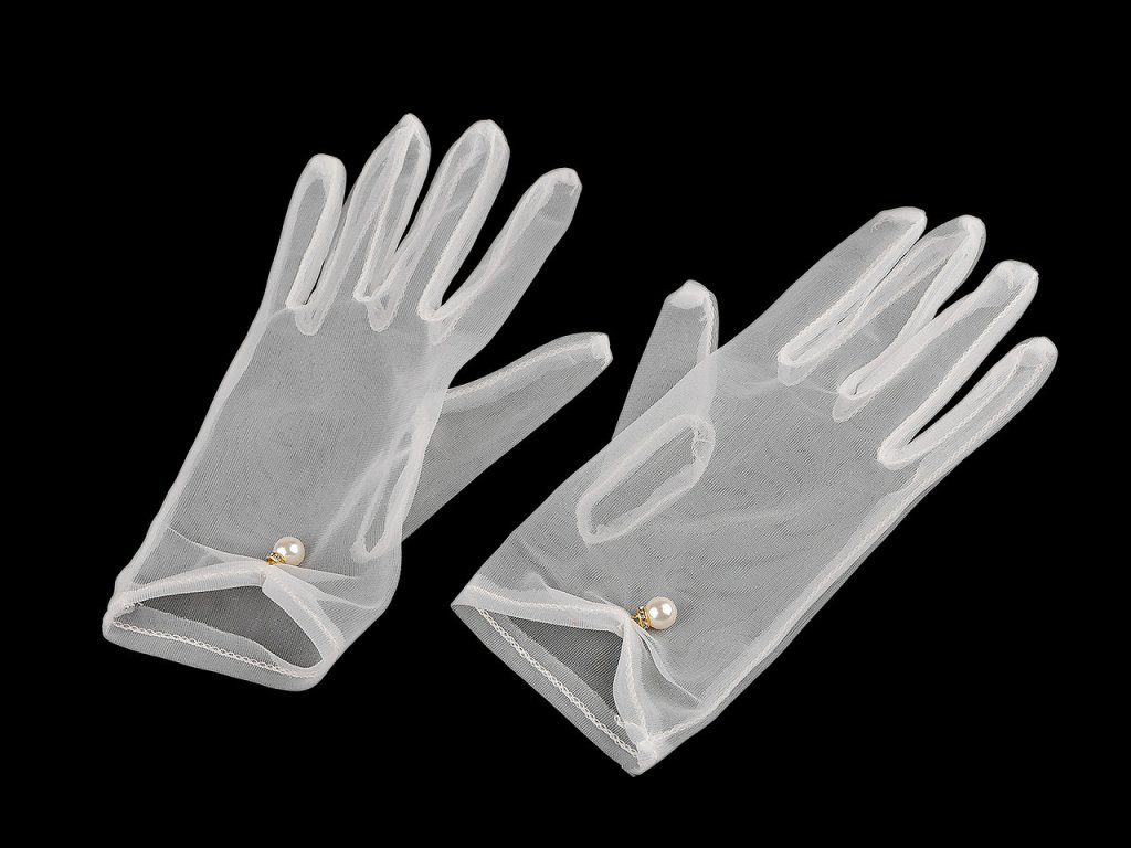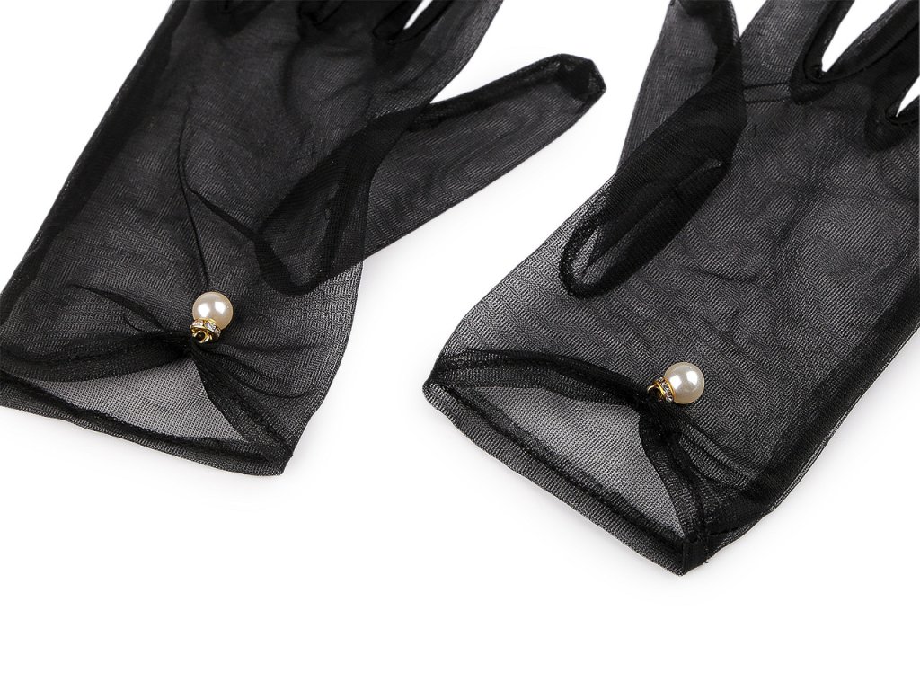 Společenské tylové rukavice využijete na ples nebo na čaj o páté, skvěle doplní i maškarní kostým nebo stylovou retro párty. Jsou velice elegantní, ozdobené přívěskem perly s rondelkou s broušenými kamínky. Jejich krátký střih je moderní a praktický.