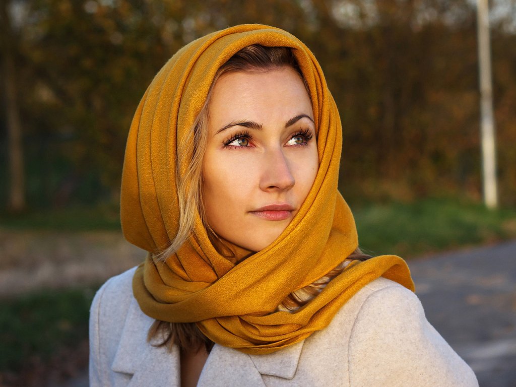 Velký jednobarevný šátek využijete na každodenní nošení. Jeho vzdušný materiál krásně splývá, šátek je hebký na dotek, příjemně vás zahřeje.