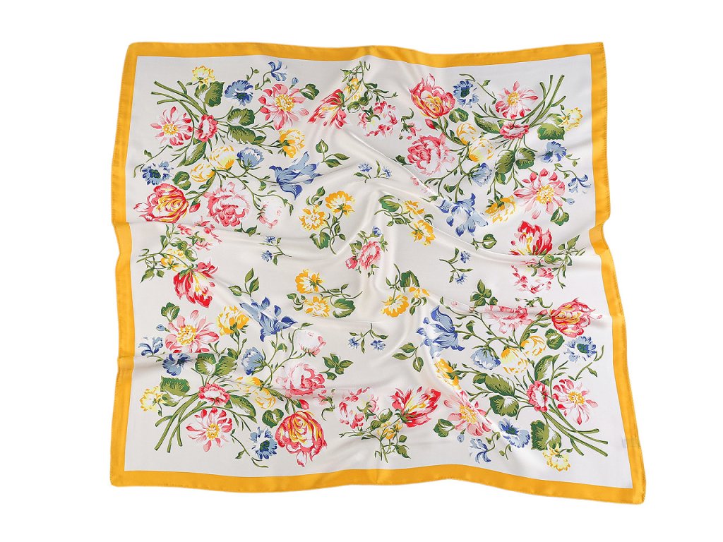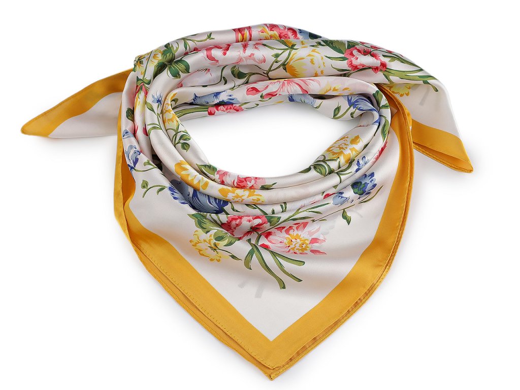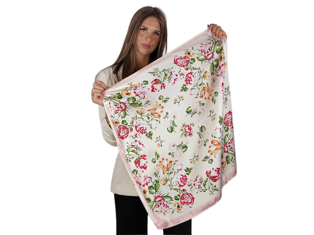 Saténový šátek oživí každý váš outfit. Jeho decentní design s květinovými motivy přináší nádech elegance a stylu, díky čemuž je ideálním doplňkem pro různé příležitosti. Šátek je lehký a příjemný na dotek, což zajišťuje komfortní nošení po celý den.