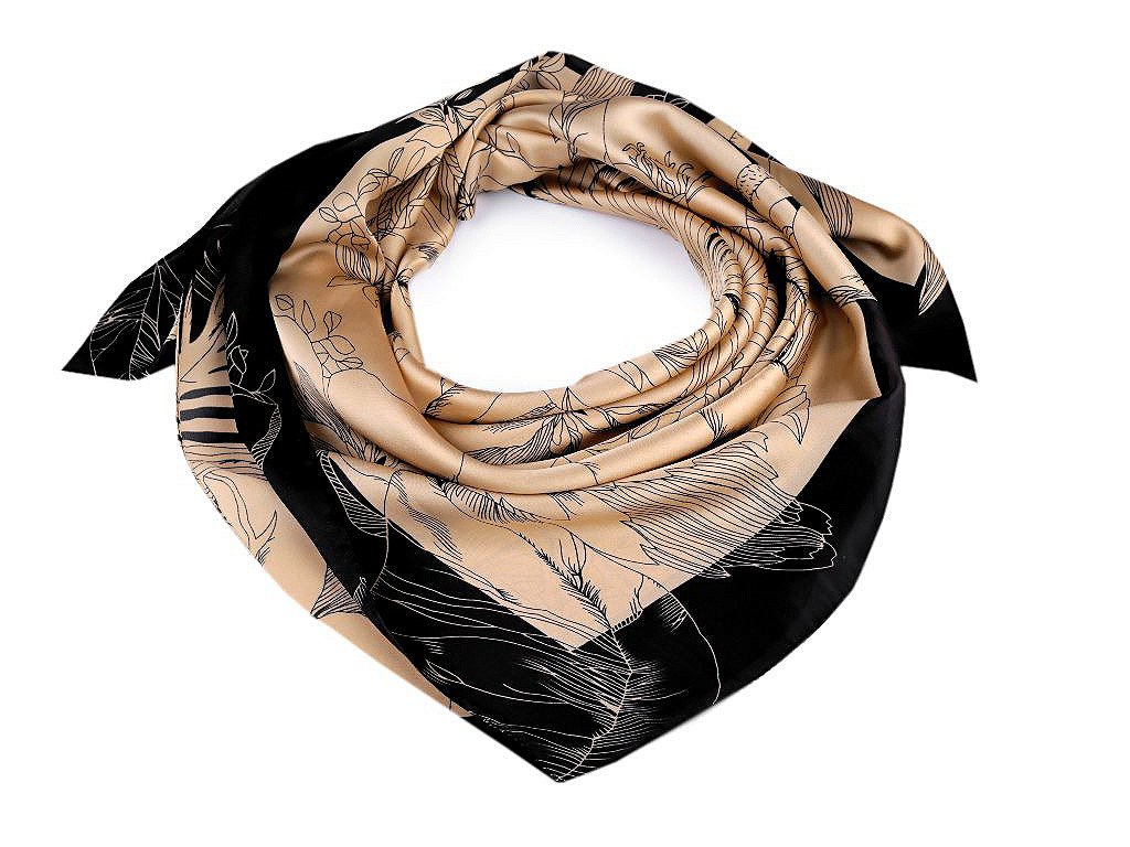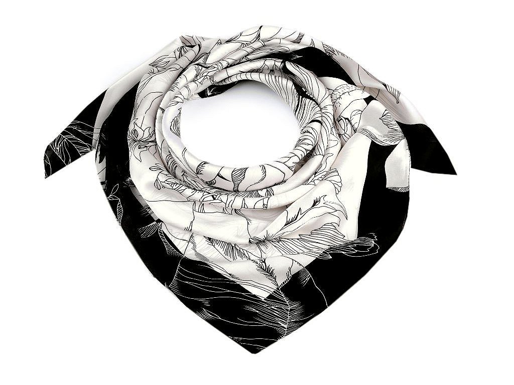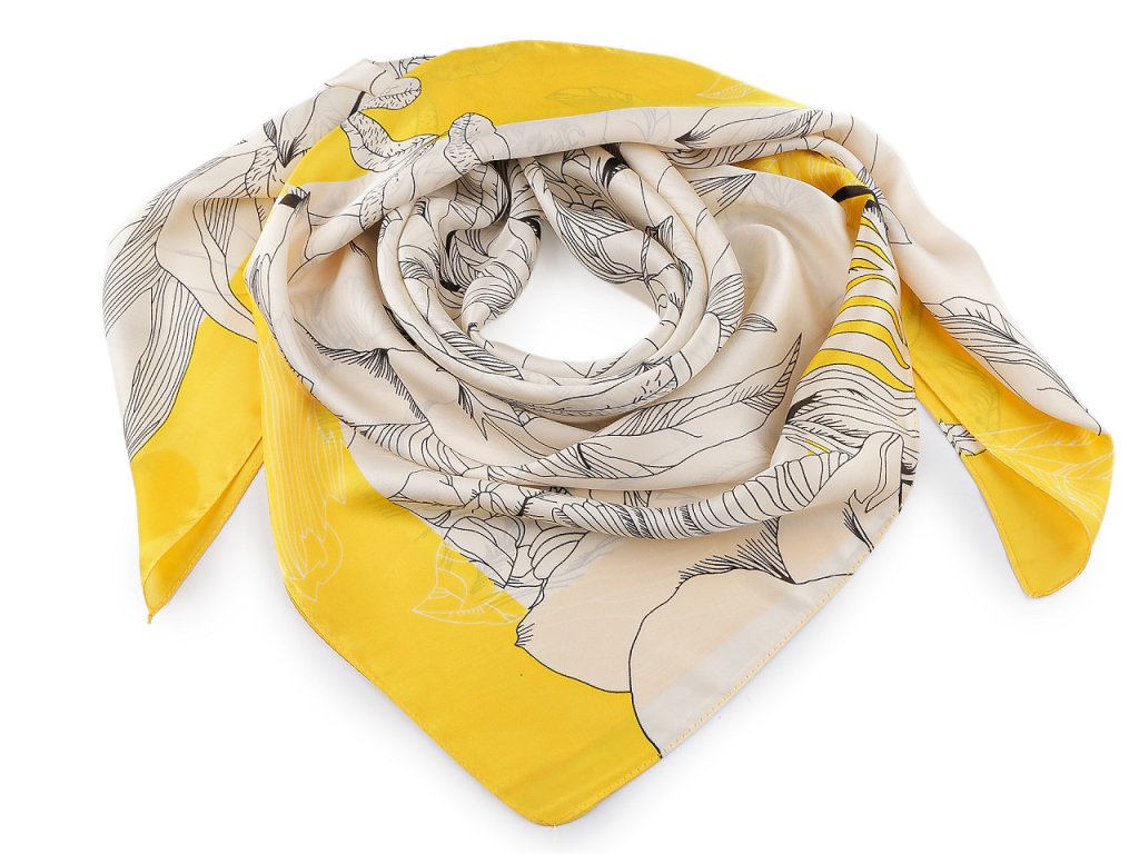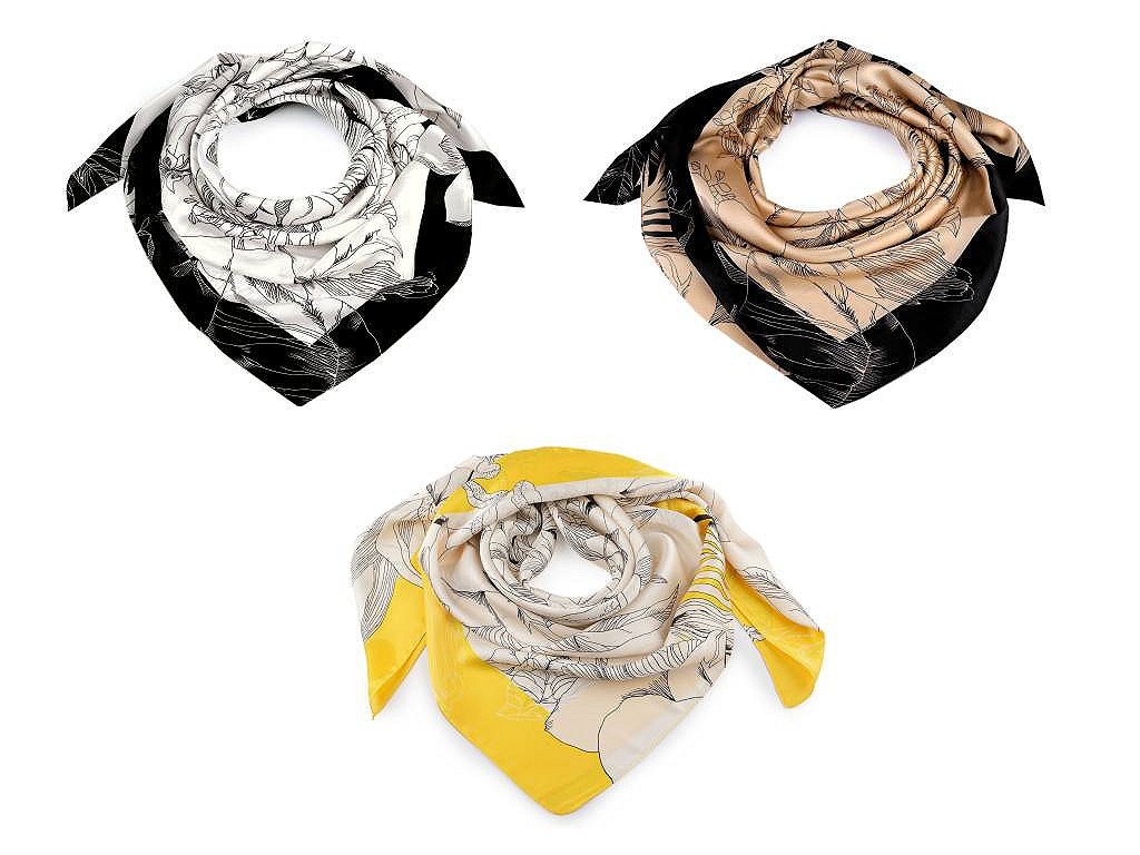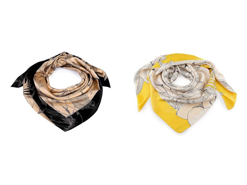 Saténový šátek s jemným rostlinným motivem využijete k jakémukoliv oblečení. Je vhodný na každodenní nošení. Jeho příjemný materiál vás bude doslova hýčkat, připomíná hedvábí. Šátek můžete uvázat do slušivého uzlu, který podtrhne dokonalost vašeho oděvu.