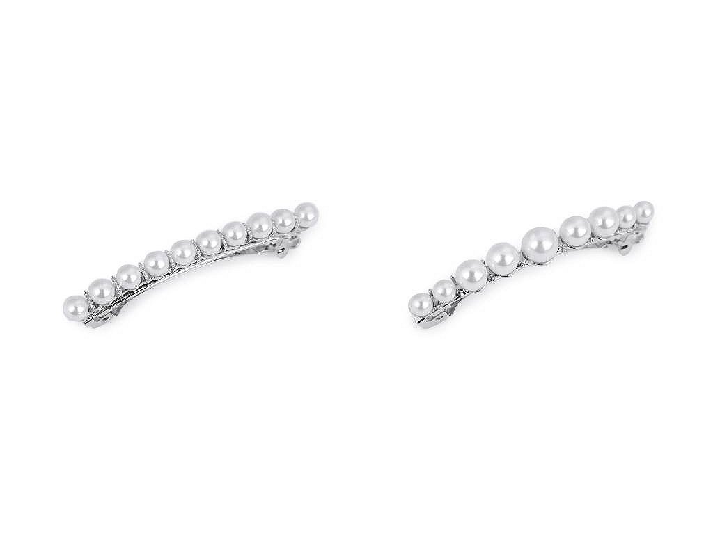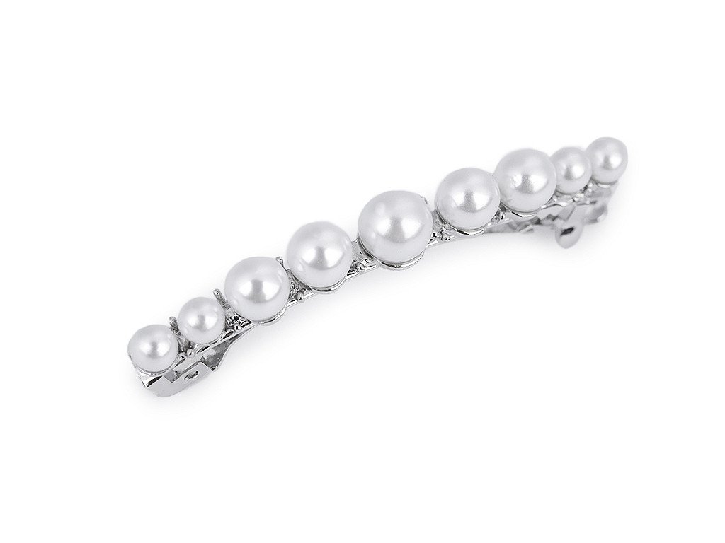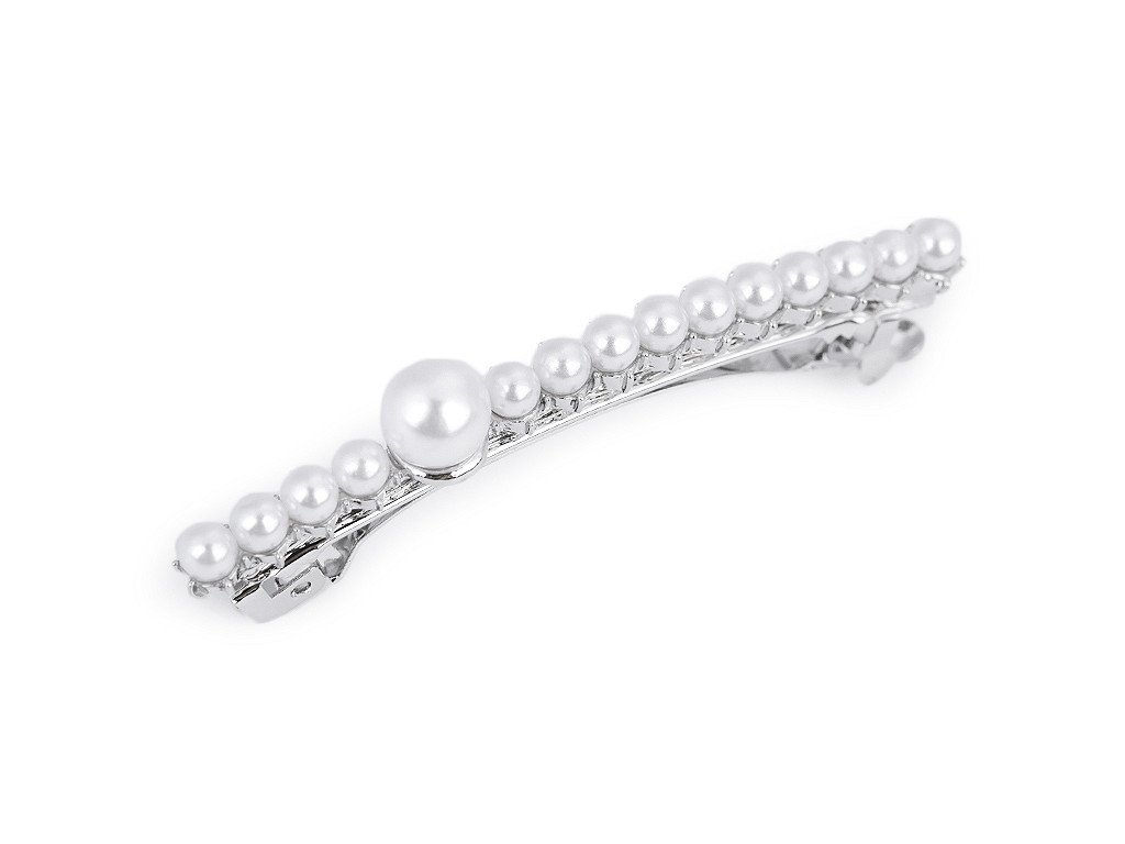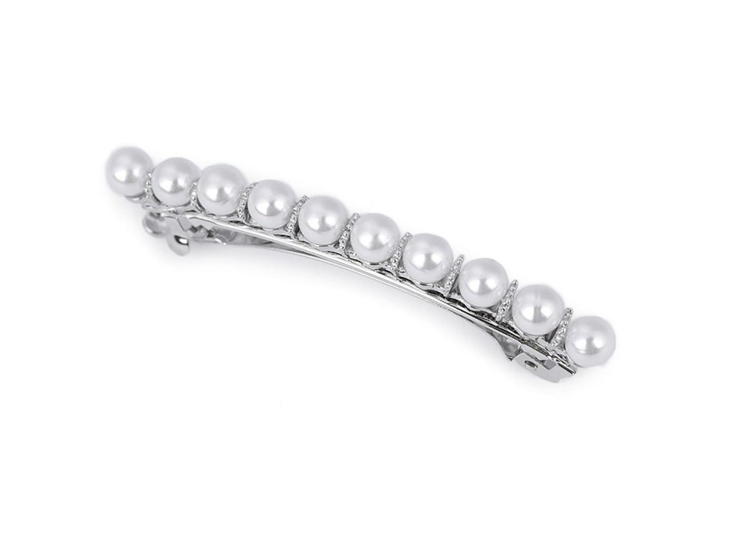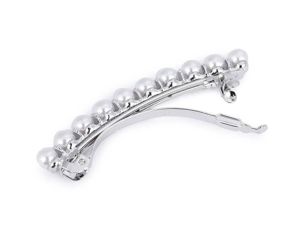 Francouzská spona s perlami vám luxusně ozdobí slavnostní účes. Má velmi kvalitní celokovové provedení. Zacvakávací mechanismus je pevný.