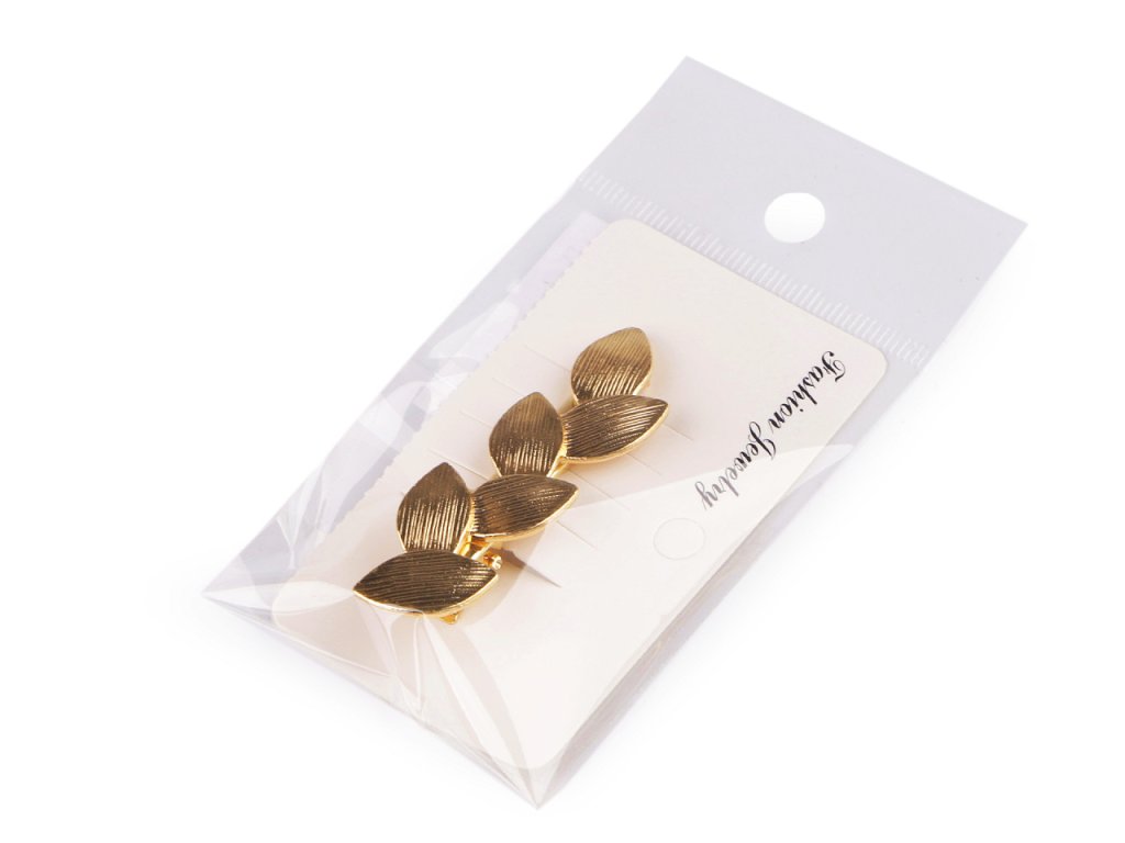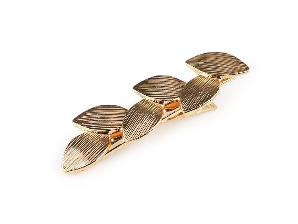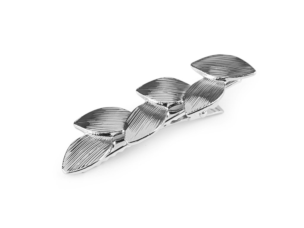 Sponka do vlasů s listy je elegantním doplňkem, který přidá vašim vlasům styl a šarm. Je vyrobená z kvalitního bižuterního kovu, má jemně rýhovaný design, ve vlasech díky zoubkům skvěle drží. Využijete ji na běžné nošení, ale také na společenské akce, perfektně ozdobí váš účes.