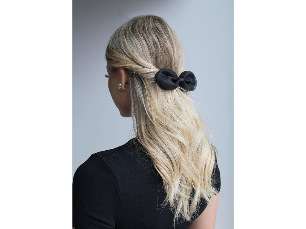 Velká spona s šifonovou mašlí nádherně ozdobí účes na všední den i slavnostní událost. Mašle je elegantní, díky několika vrstev šifonu perfektně drží tvar. Spona má kvalitní celokovové provedení, ve vlasech pevně drží díky zoubkům.