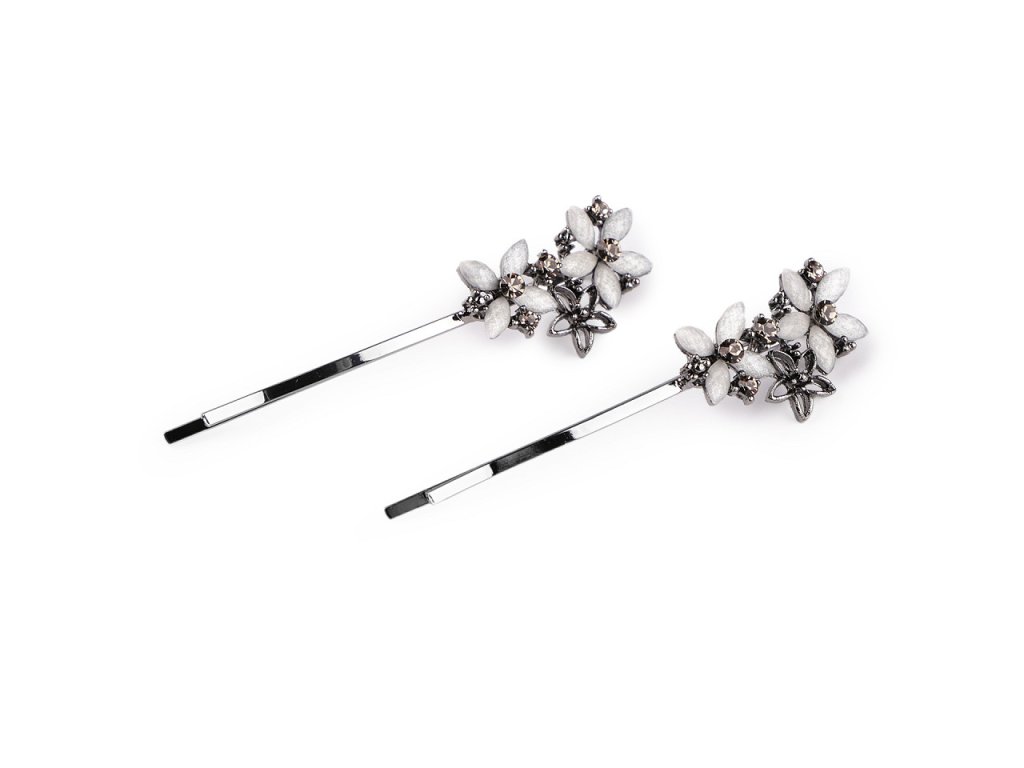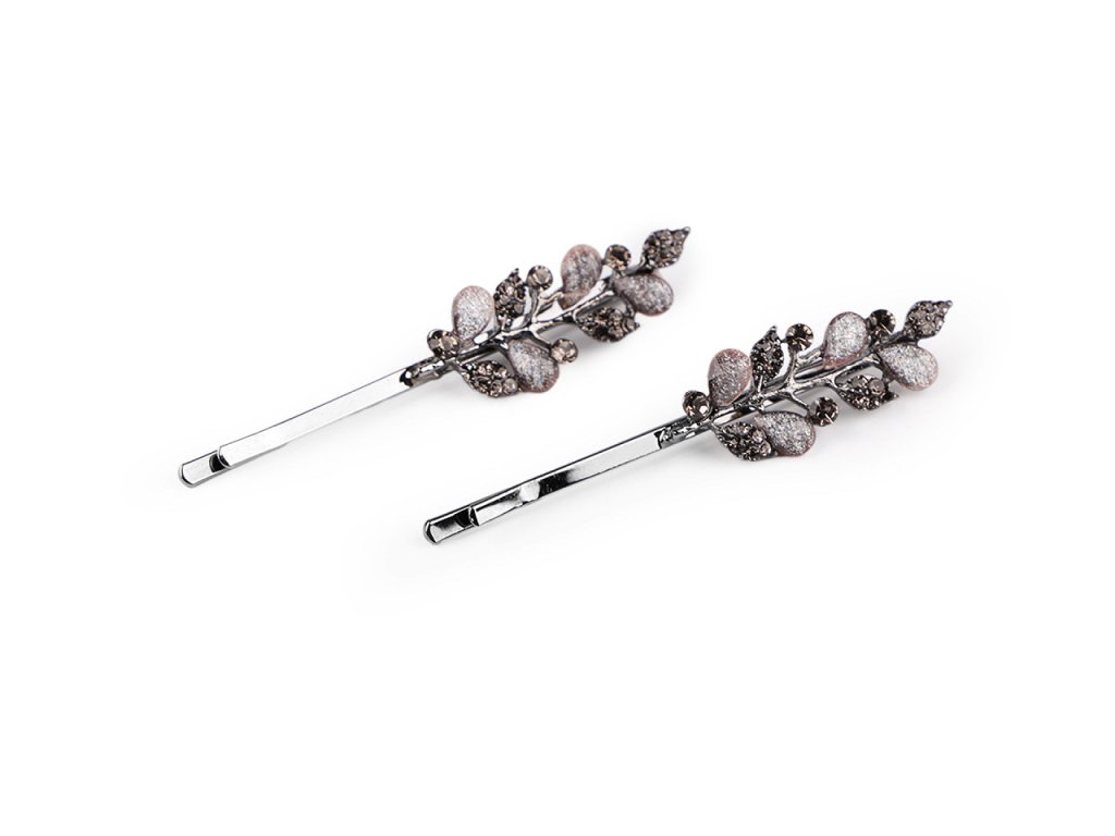 Sponky do vlasů / pinetky s broušenými kamínky květy, list
