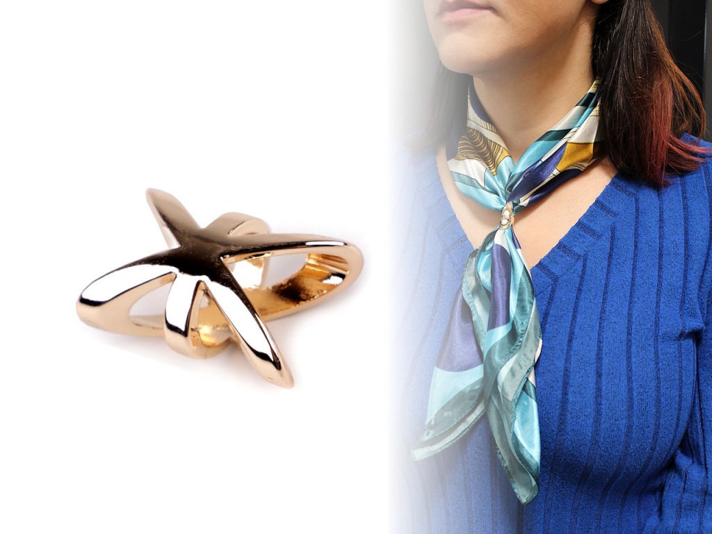 Ozdobná spona se používá na rychlé sepnutí šátku. Vypadá velmi efektně a elegantně v kombinaci se saténovým nebo průsvitným šátkem.
