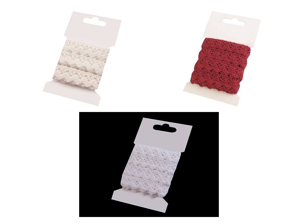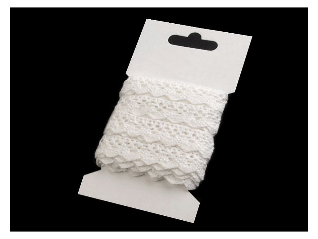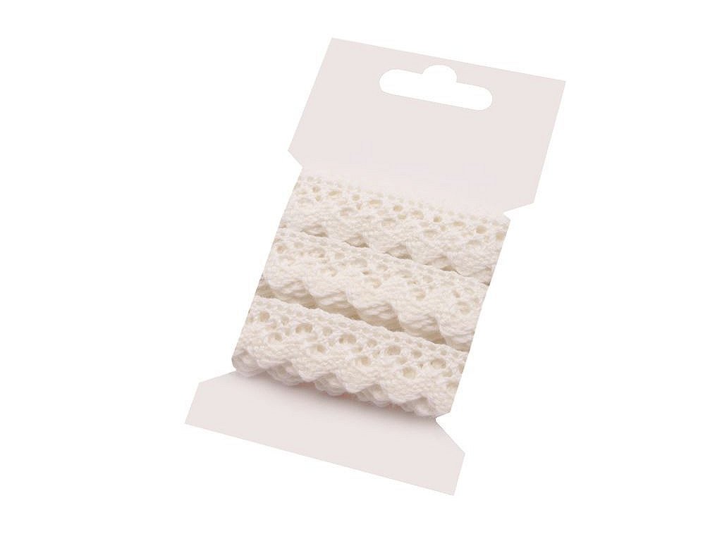 Bavlněná paličkovaná krajka působí romantickým dojmem. Z jedné strany je zakončena jemnými obloučky. Použití: Krajku můžete použít jako lem ubrusů, běhounů a deček, ozdobit s ní polštáře či oblečení (šaty, sukně, halenky apod.). Doporučujeme ji žehlit přes tkaninu. Využijete ji i v technice scrapbooking (můžete ji nalepit na blahopřání, do alba fotografií apod.)