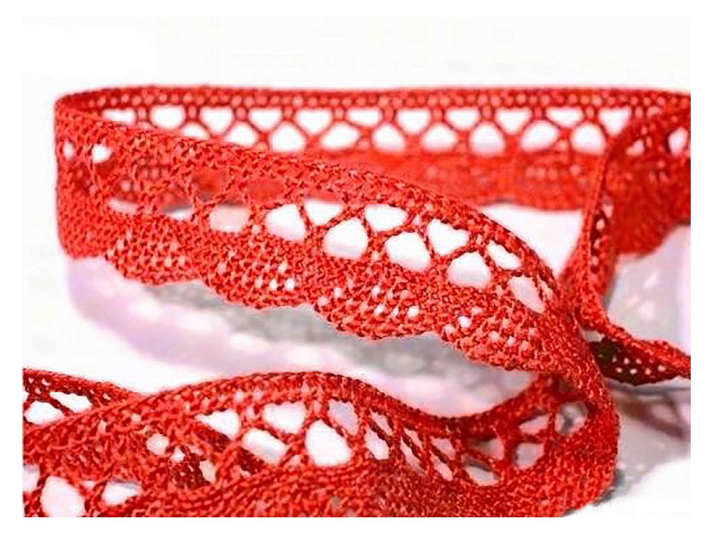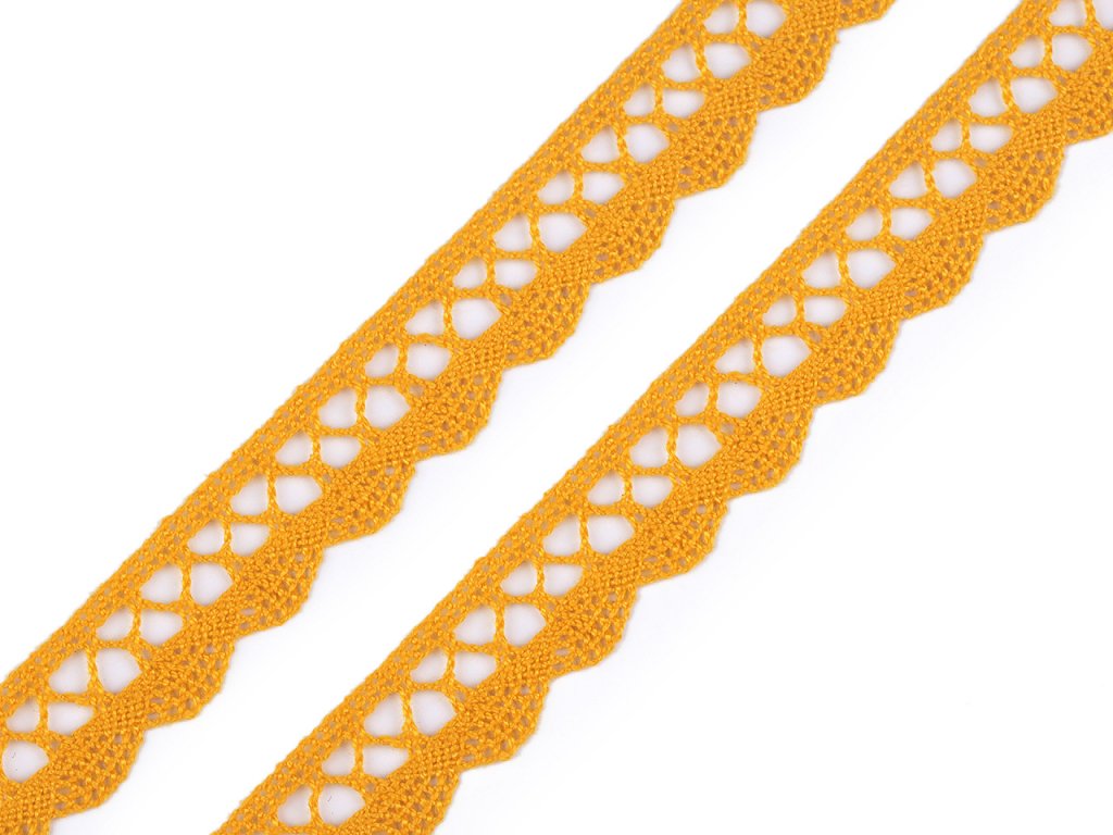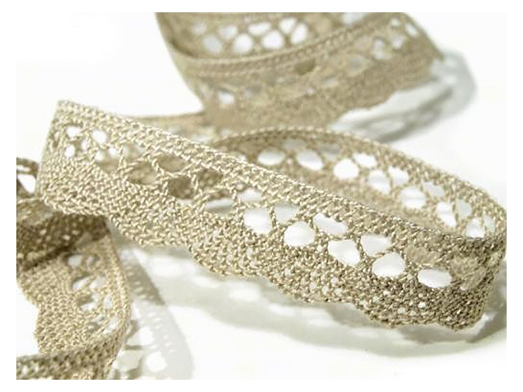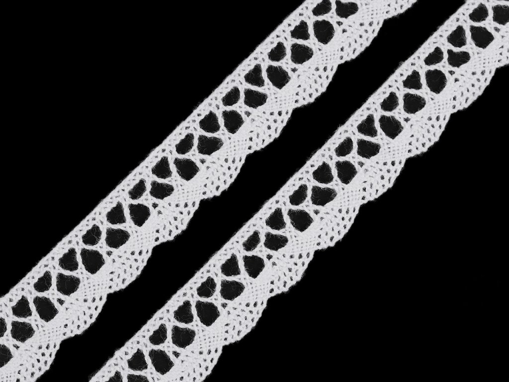 Bavlněná paličkovaná krajka je zdobena malými očky a zakončena jemnými vlnkami. Doporučujeme ji žehlit přes tkaninu.