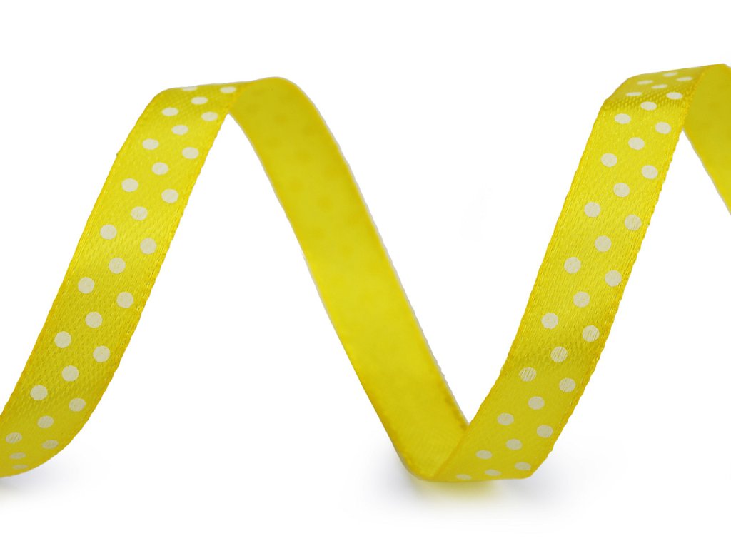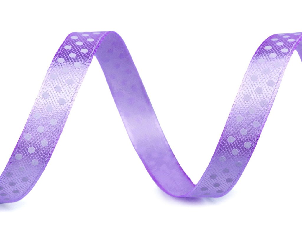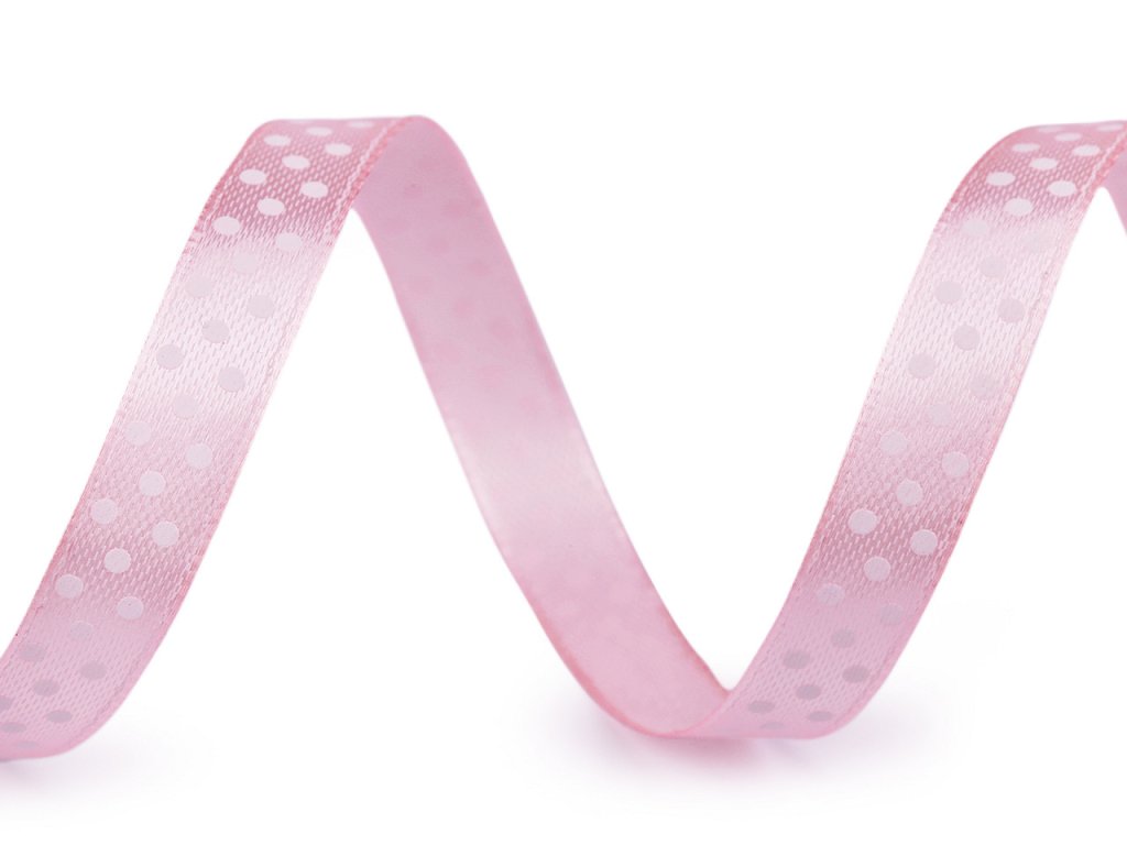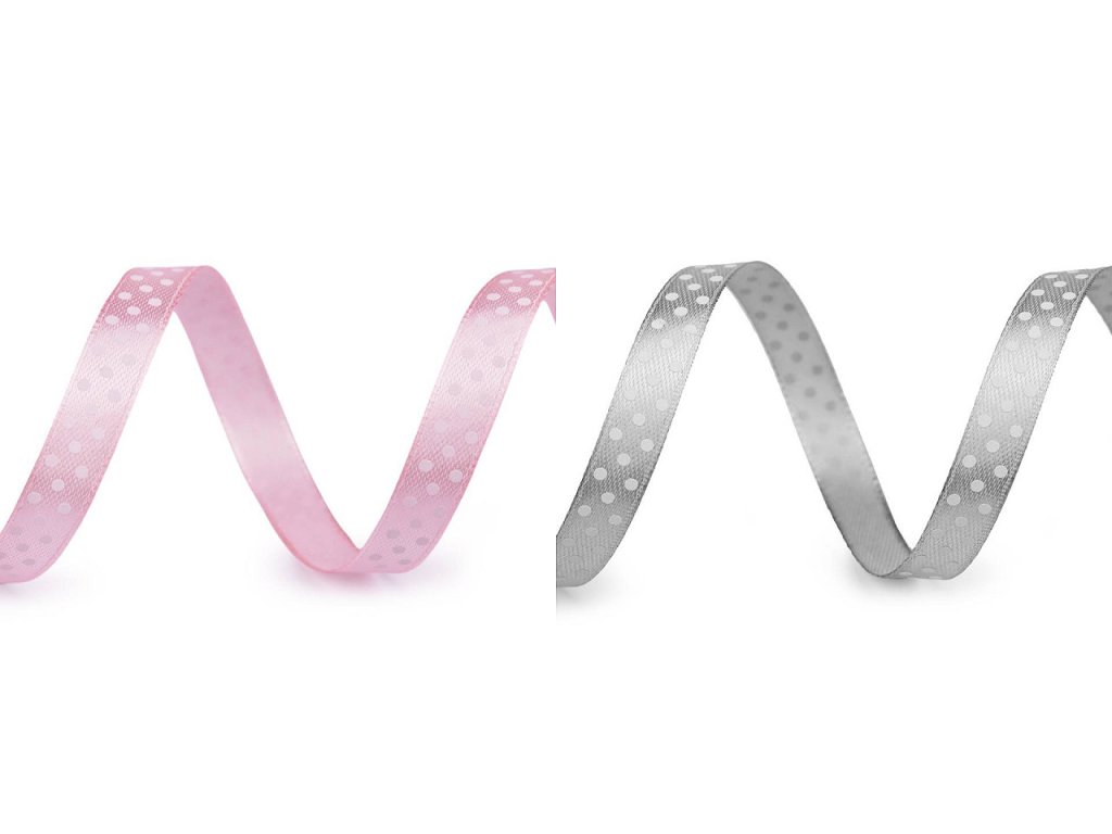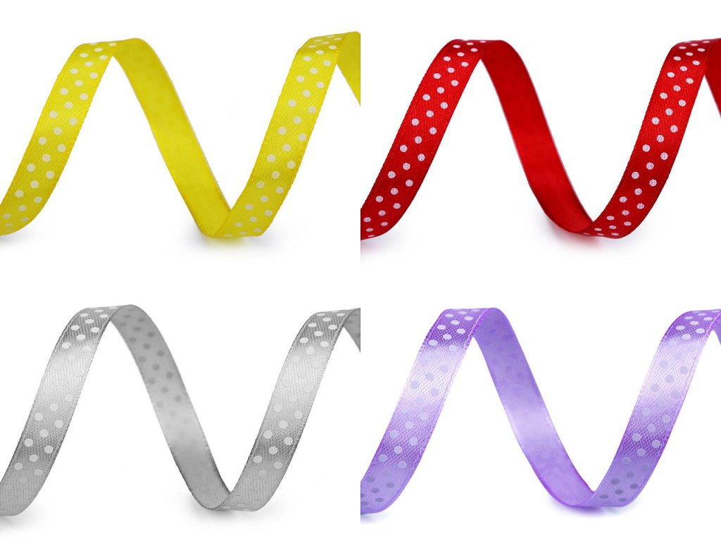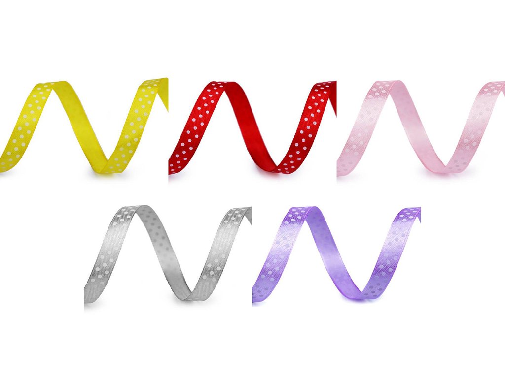 Saténovou stuhu zdobí potisk puntíků, který je jednostranný. Stuha je pevná, není pružná.