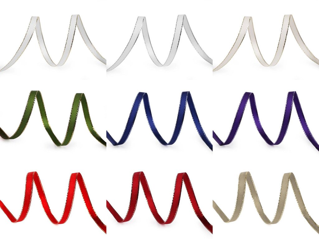 Taftová stuha s lurexem každého zaujme svým jemným elegantním třpytem. Lurex je po stranách, stuha je ideální pro zdobení dárkových balení, tvorbu ozdob na sváteční stůl, svatební dekorace a různé kreativní projekty.