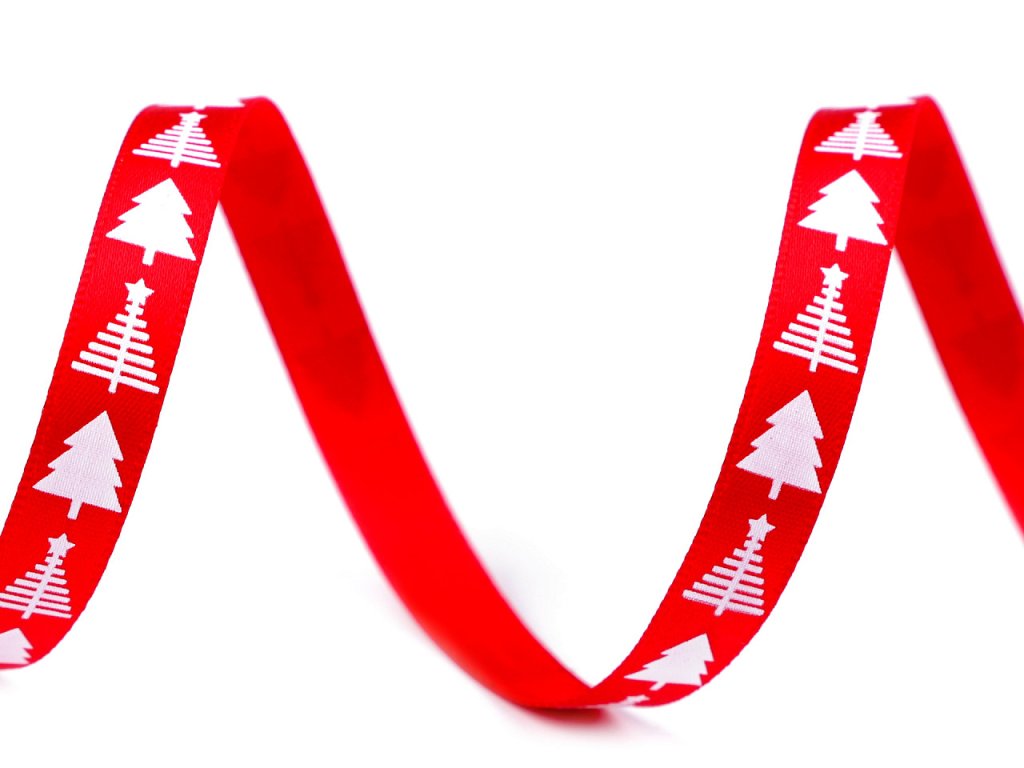Saténová stuha s potiskem stromečků. Potisk je jednostranný.
