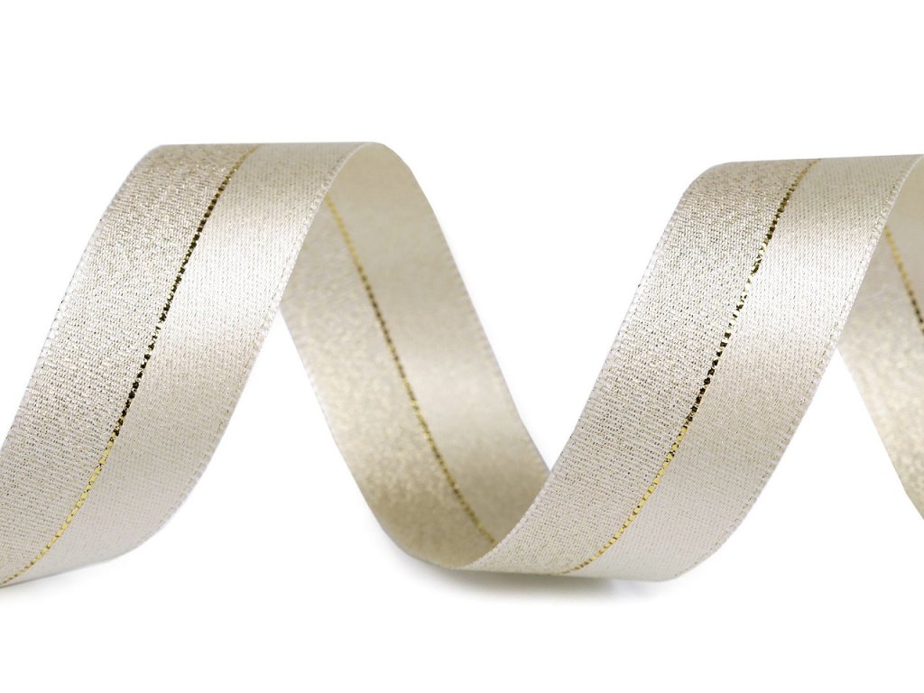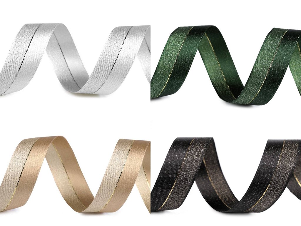 Dekorační stuha je opticky rozdělená lurexovým proužkem na 2 poloviny. Jedna polovina je jednobarevná, druhá je protkaná lurexem, poutavě se třpytí. Stuha má pevné okraje, je oboustranná.