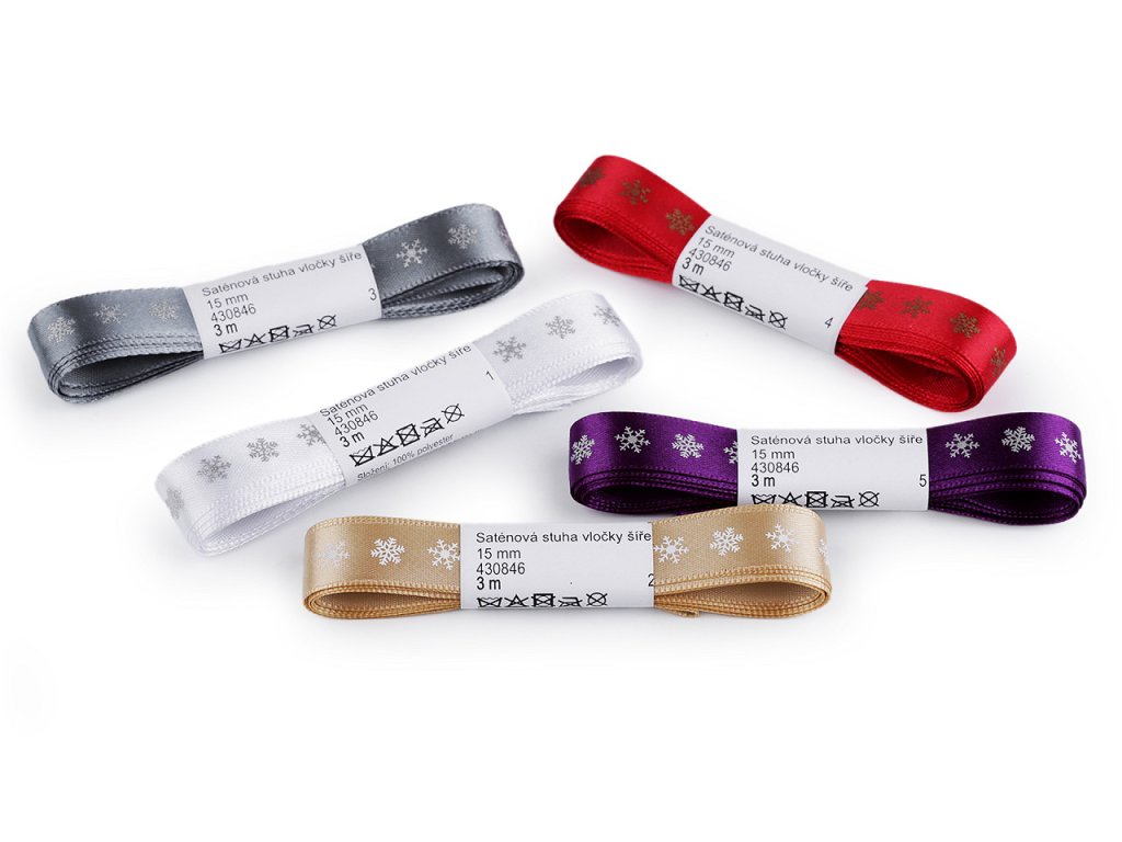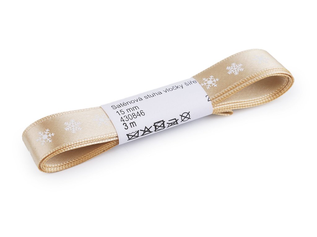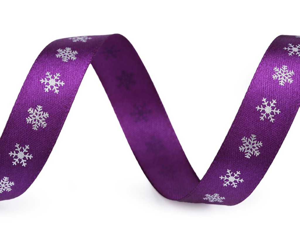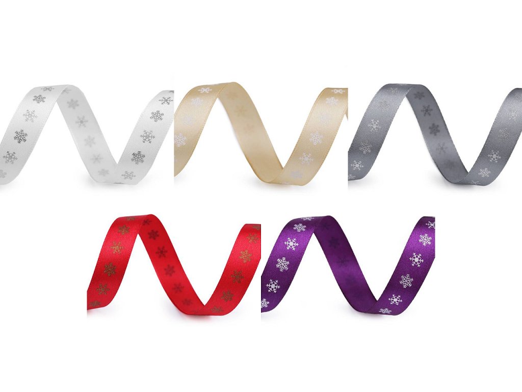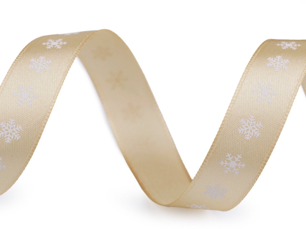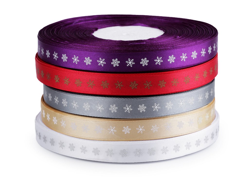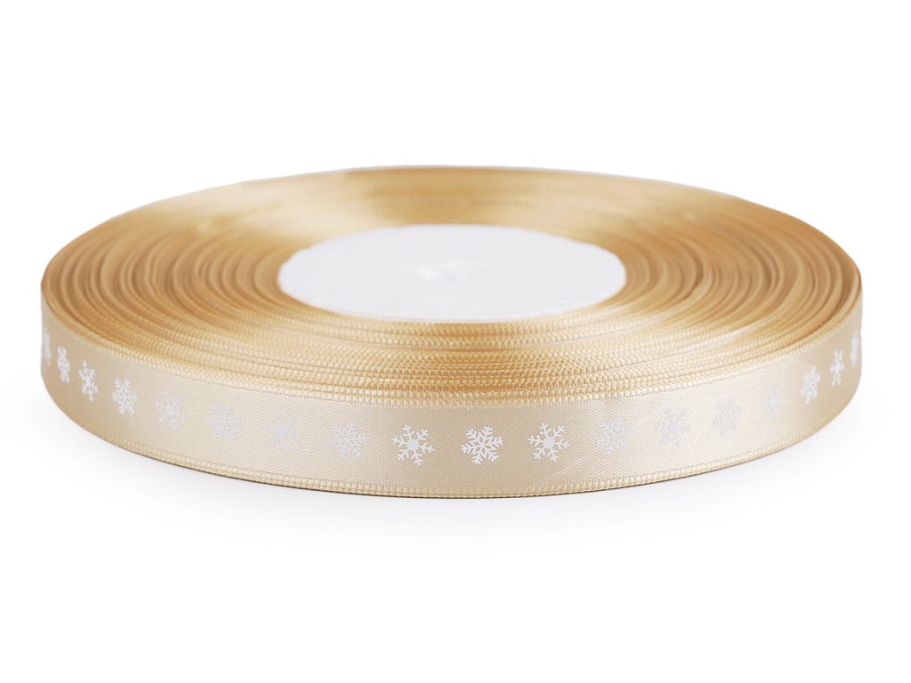 Dekorační saténová stuha s potiskem vloček je velice poutavá, potisk je jednostranný.