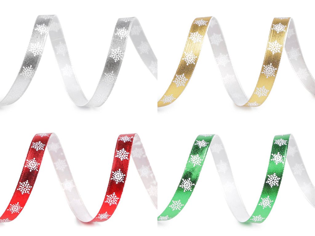 Dekorační stuha s metalickým potiskem s vločkami má poutavý lesk. Potisk je jednostranný.