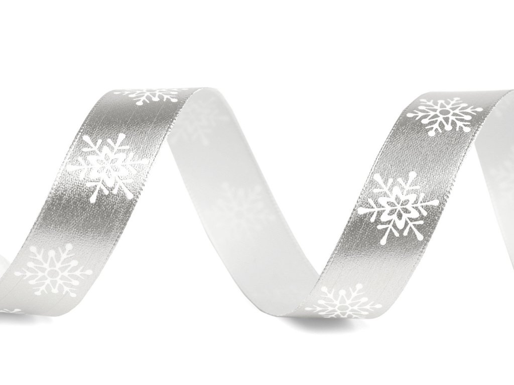 Vánoční dekorační stuhu zdobí lesklý metalický potisk a motiv sněhové vločky. Je velice kvalitní, působí luxusním dojmem. Potisk je jednostranný.