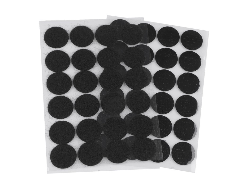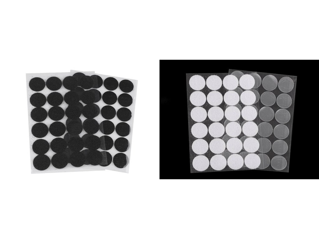 Suchý zip ve tvaru koleček je samolepicí. Můžete jím připevnit nápisy, obrázky, zalepit plastové obálky, krabičky apod. Využijete ho i k výrobě quiet booku pro děti.