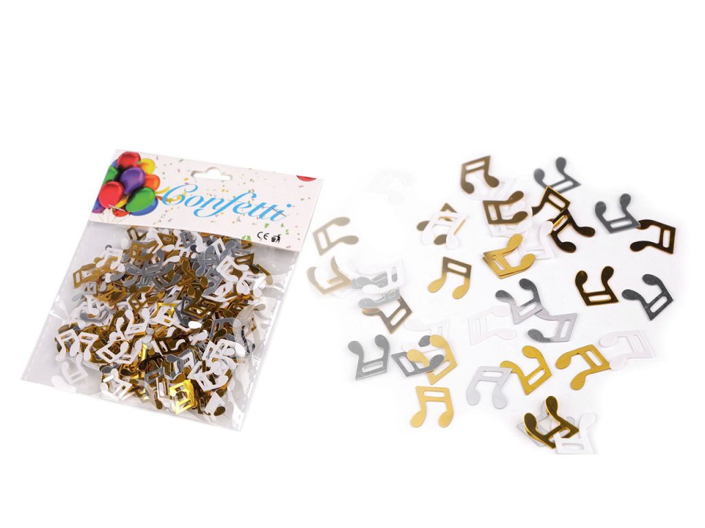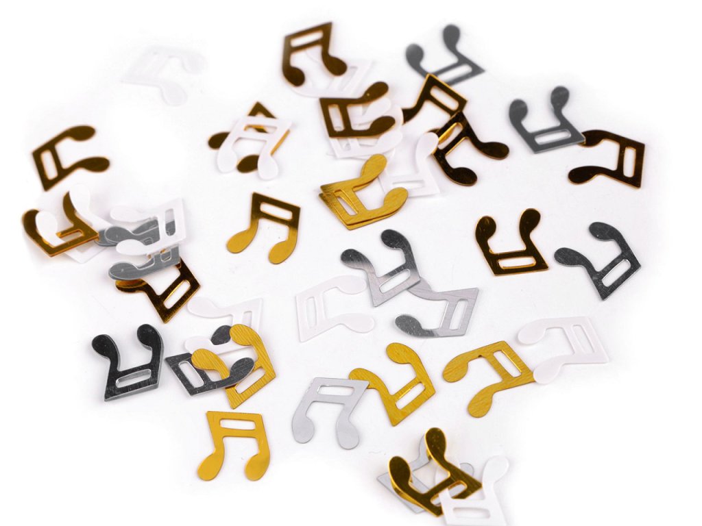 Lesklé konfety ve tvaru not jsou skvělým doplňkem na tematických oslavách, svatbách i večírcích. Můžete je volně poházet na slavnostní tabuli, ale také s nimi ozdobit dárkové balíčky či balónky. Využijete je i na scrapbooking.