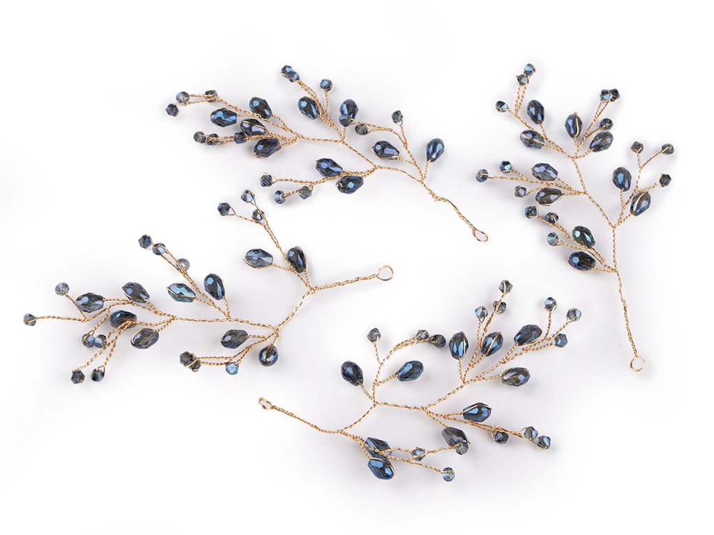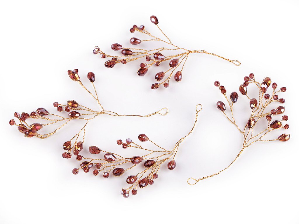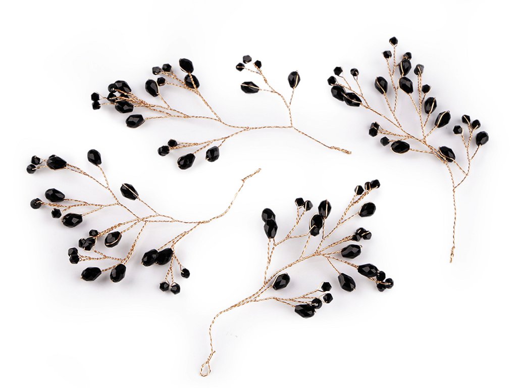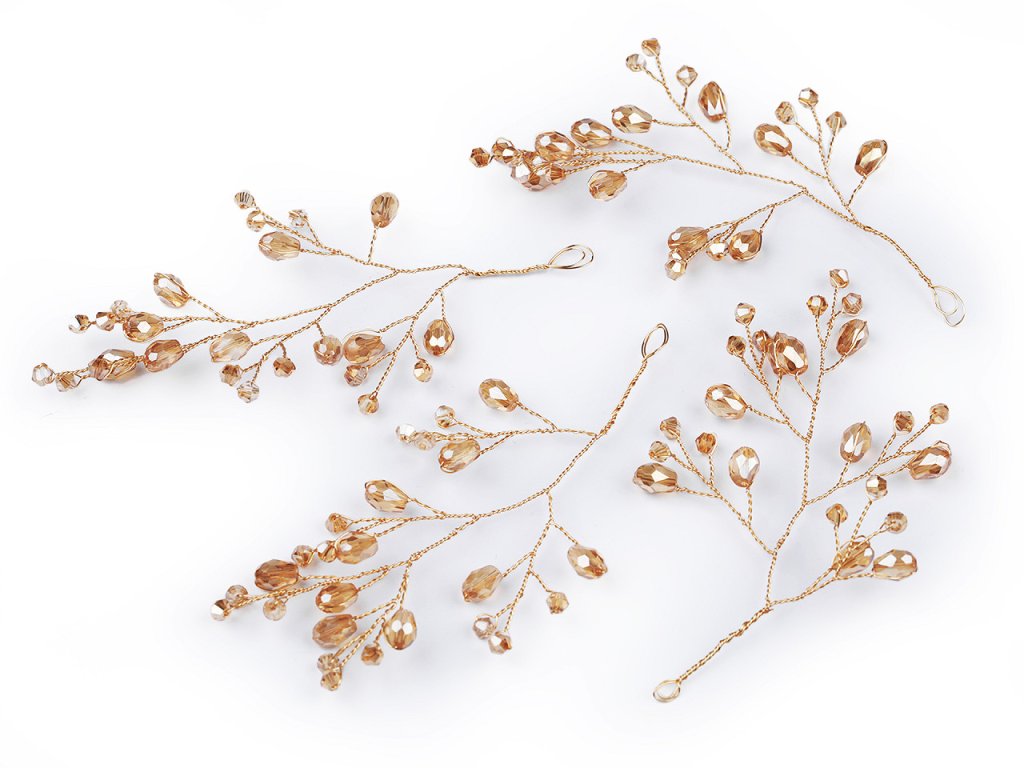 Větvičku s broušenými korálky využijete jako úchvatnou svatební i vánoční ozdobu. Korálky mají povrchovou úpravu s AB efektem, nádherně se třpytí. Větvičku můžete zakomponovat do věnců, svícnů nebo květinových vazeb. Na konci má očko, dá se i zavěsit. Vynikne také volně položená na sváteční tabuli. Hodí se i k výrobě fascinátorů, korunek, věnečků a jiných vlasových doplňků, díky drátkům ji můžete lehce tvarovat.