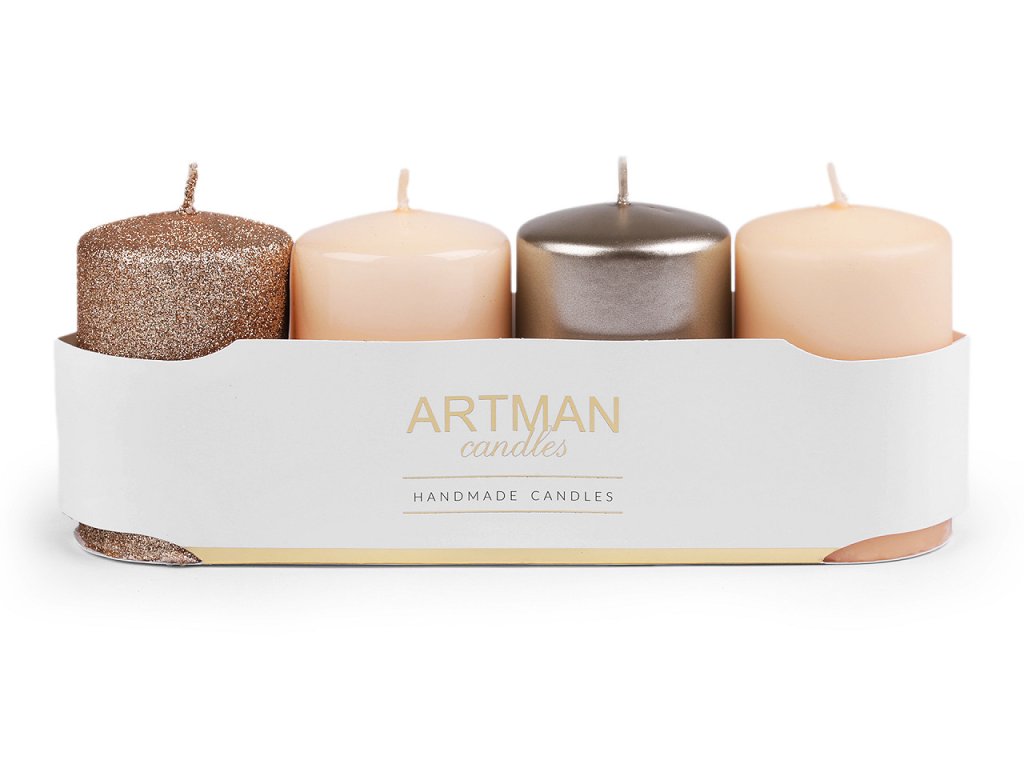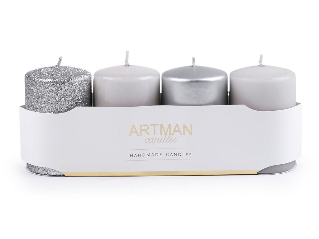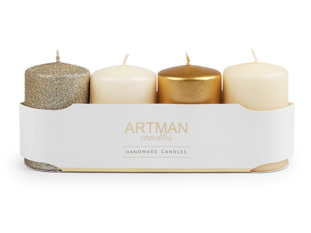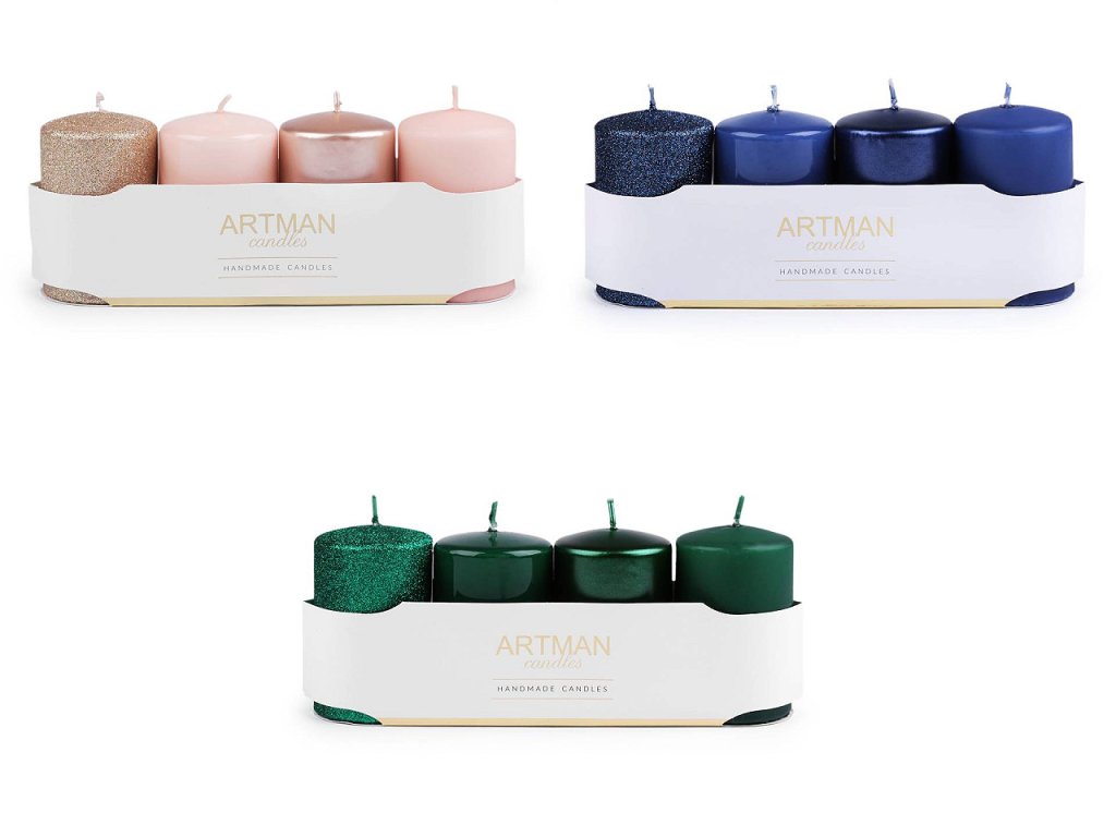 Adventní svíčky jsou velké a mají luxusní vzhled. V sadě najdete svíčky klasické, metalické a s glitry. Využijete je nejen ke zdobení adventních věnců, ale i jiných svátečních dekorací.