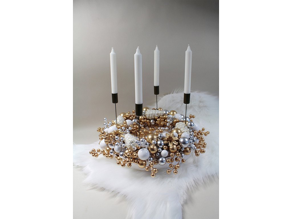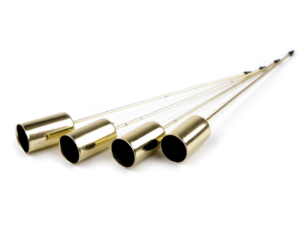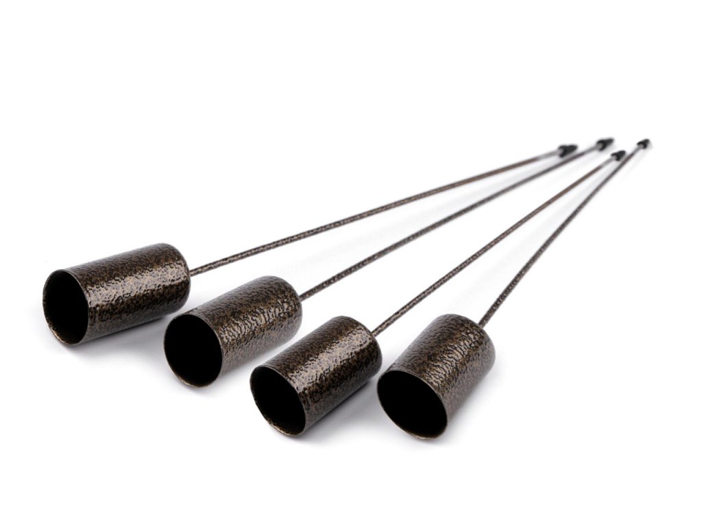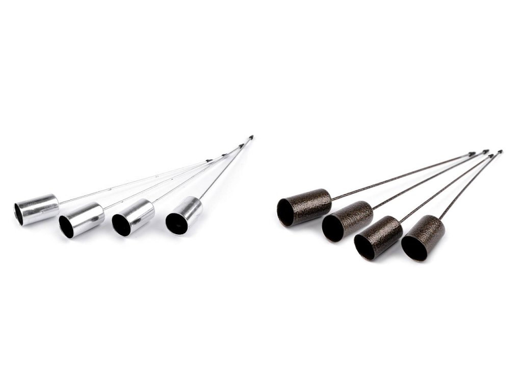 Dlouhé kovové bodce na štíhlé svíčky vám umožní umístit je do vyšších poloh. Využijete je na výrobu adventních věnců a podobných dekorací. Hodí se na zapíchnutí do polystyrenu, florexu a podobných aranžérských hmot. Uvnitř misky hrot není.