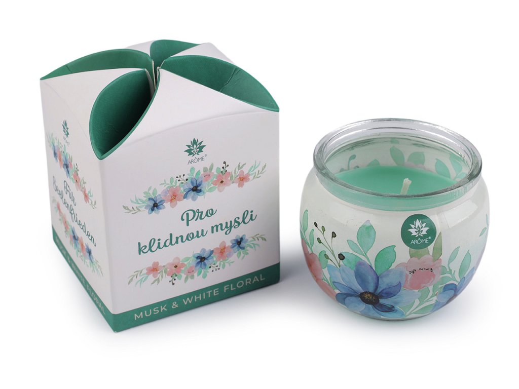 Vonná svíčka ve skleněné dóze nádherně provoní interiér. Svíčky jsou balené v papírové krabičce, poslouží i jako dárek.