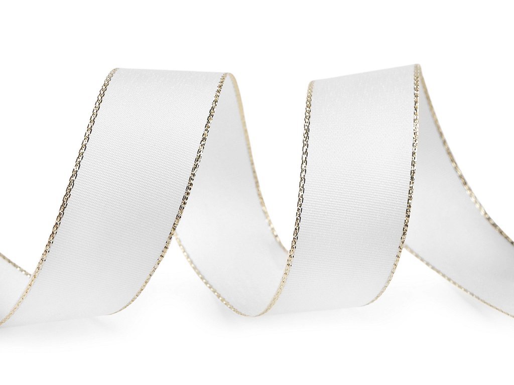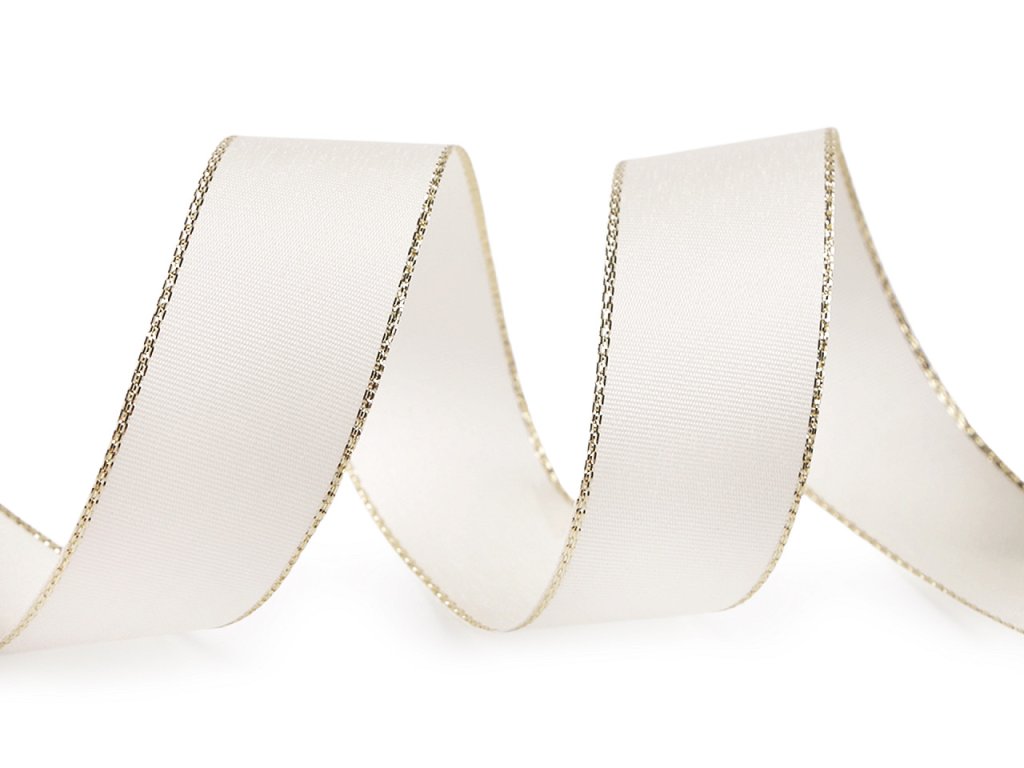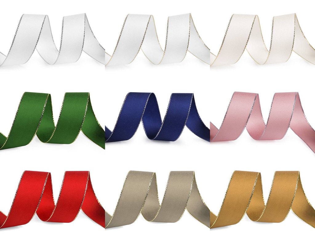 Taftová stuha s lurexem vás zaujme svým jemným elegantním třpytem. Lurex je po stranách, stuha je ideální pro zdobení dárkových balení, tvorbu ozdob na sváteční stůl, svatební dekorace či různé kreativní projekty.