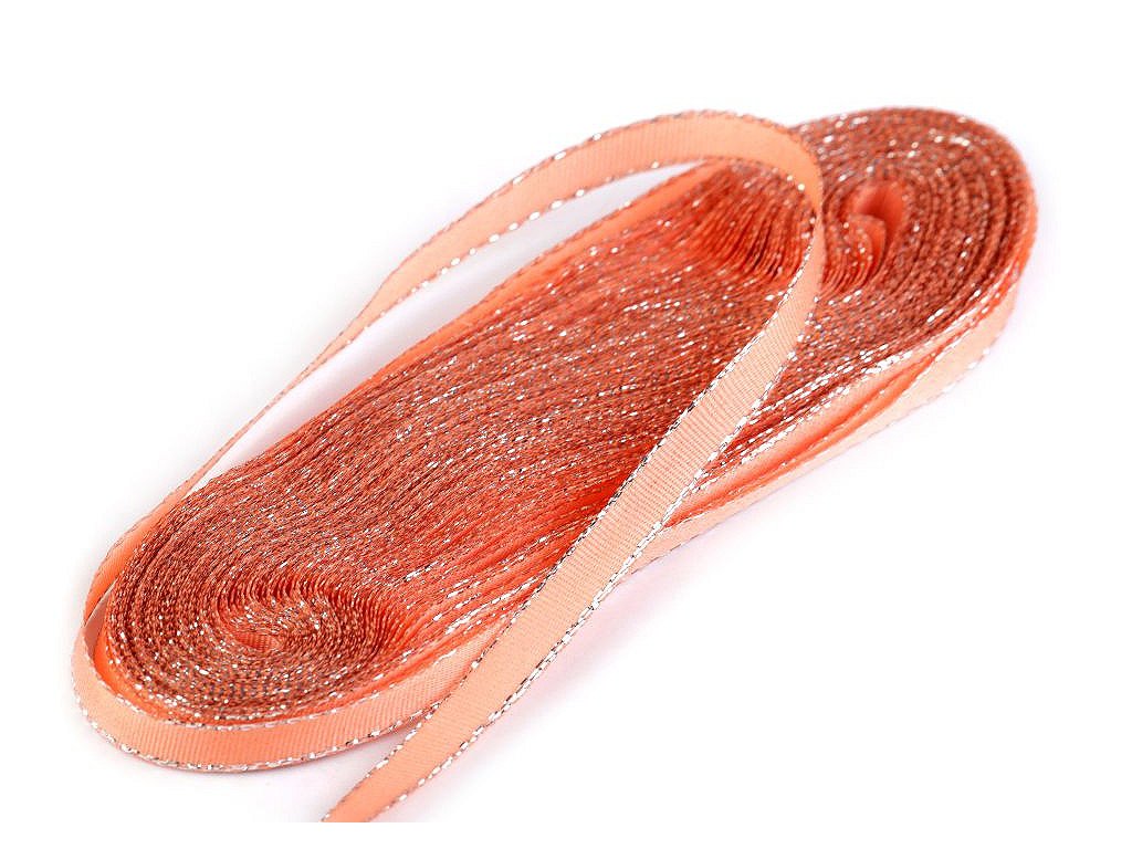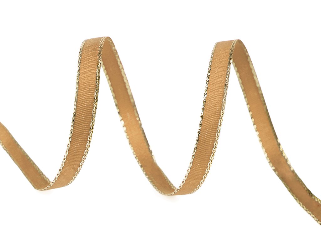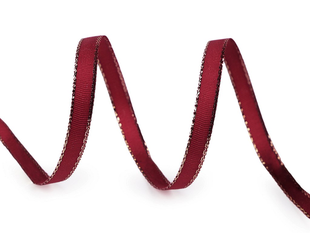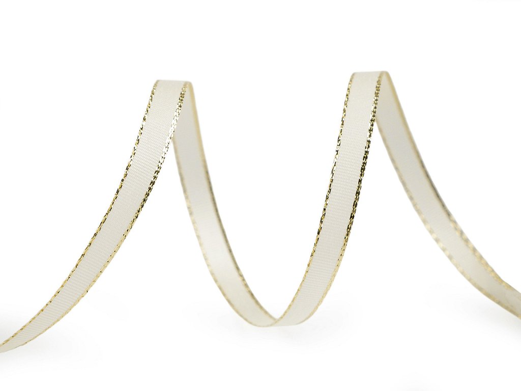Taftová stuha s lurexem každého zaujme svým jemným elegantním třpytem. Lurex je po stranách, stuha je ideální pro zdobení dárkových balení, tvorbu ozdob na sváteční stůl, svatební dekorace a různé kreativní projekty.