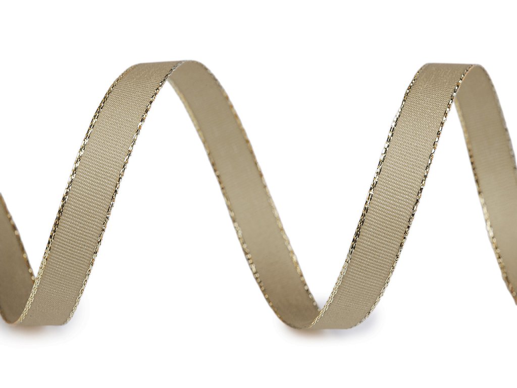 Taftová stuha s lurexem na první pohled zaujme svým jemným elegantním třpytem. Lurex má po stranách, stuha je ideální pro zdobení dárkových balení, tvorbu ozdob na sváteční stůl, svatební dekorace a různé kreativní projekty.