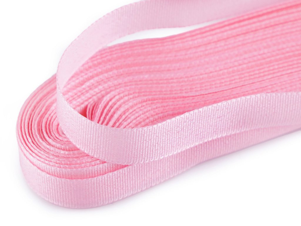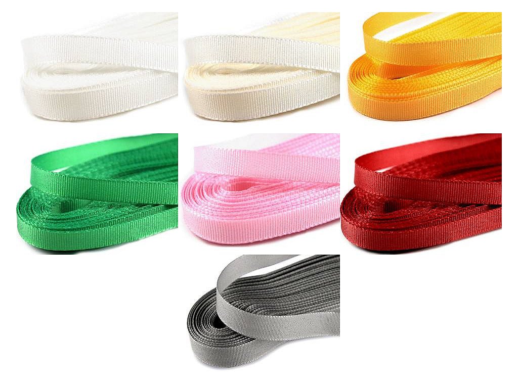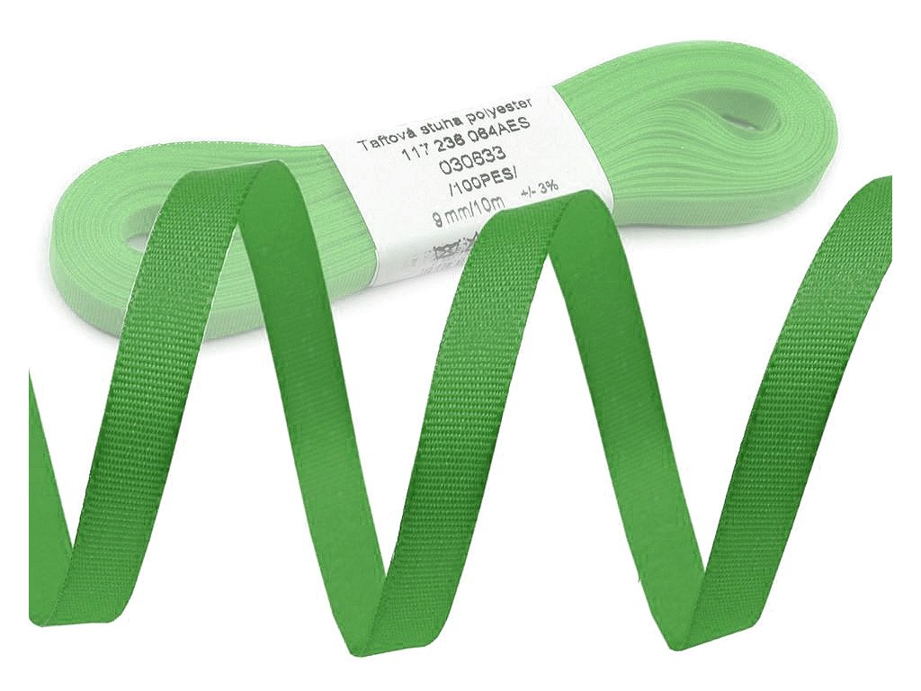 Kvalitní taftová stuha české výroby o šířce 9 mm. Je vhodná pro dekorace a zdobení dětských pokojů. Vezměte např. růžovou, přeložte napůl, dozdobte korálky a z barevného kartónu vystřihněte jméno slečny. Přišijte, přilepte, přicvakněte čímkoliv na stuhu a celé to upevněte nad její dveře. Vznikla vám tak jmenovka, kterou si může vaše dítě dozdobit samo. Pro kluka je postup stejný, akorát zvolíte jinou barvu. Povrch stuhy není tak hladký jako povrch saténové stuhy, barevný povrch je matný. Světlejší odstíny budou vždy širší než tmavé odstíny z důvodu kapacitních a technologických možností strojů. Stuhy se barví na jedné lince, proto se může šířka barevné stuhy srazit až o 5 %. Dodáváme v návinu po 10 m. Snadno se dělají mašle, stuha při utahování neklouže.