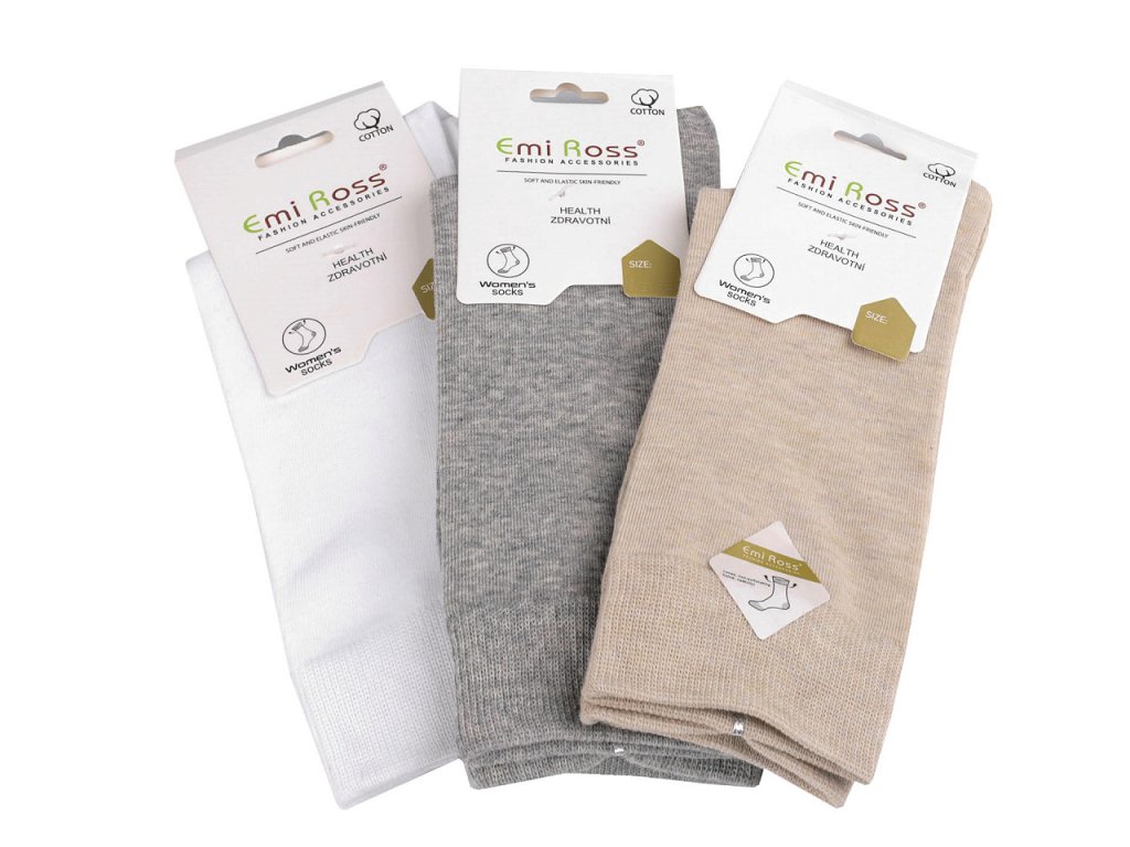 Kvalitní bavlněné ponožky jsou pružné a prodyšné. Některé mají jemný melírovaný efekt. Jsou pohodlné díky hornímu lemu, který neškrtí. Ve špičce je plochý šev, aby ponožky netlačily. Využijete je denně na běžné nošení.