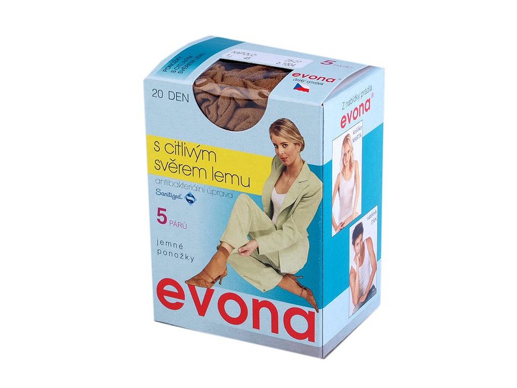 V krabičce je 5 párů ponožek s citlivým svěrem lemu. Velikost 25-27.