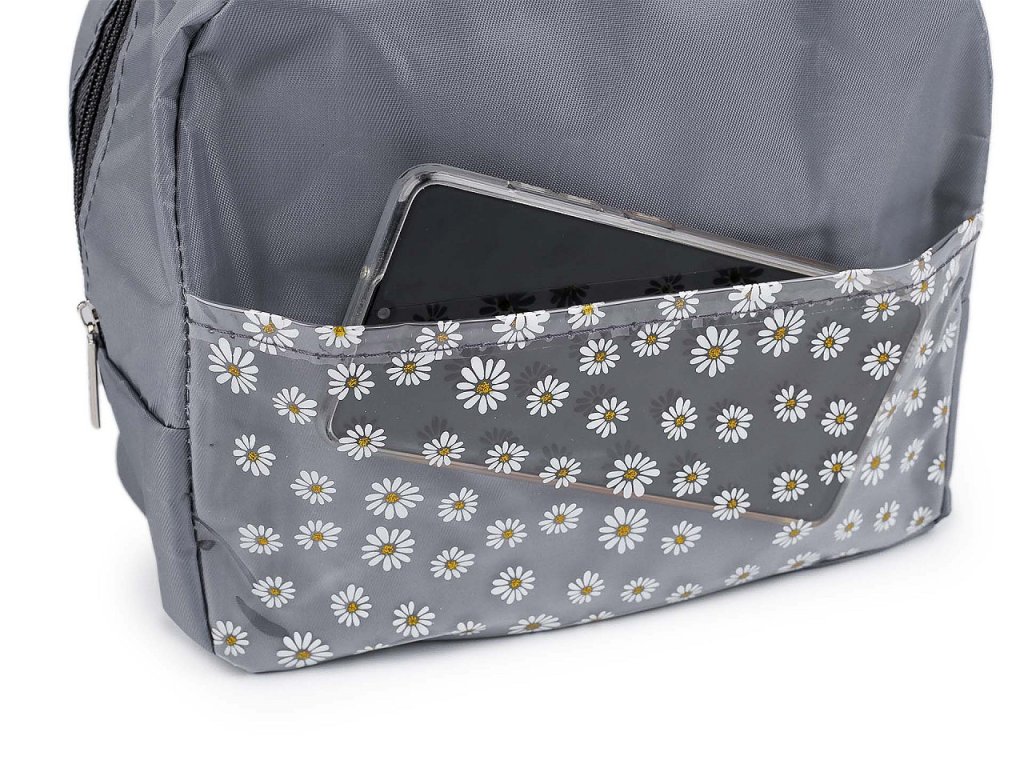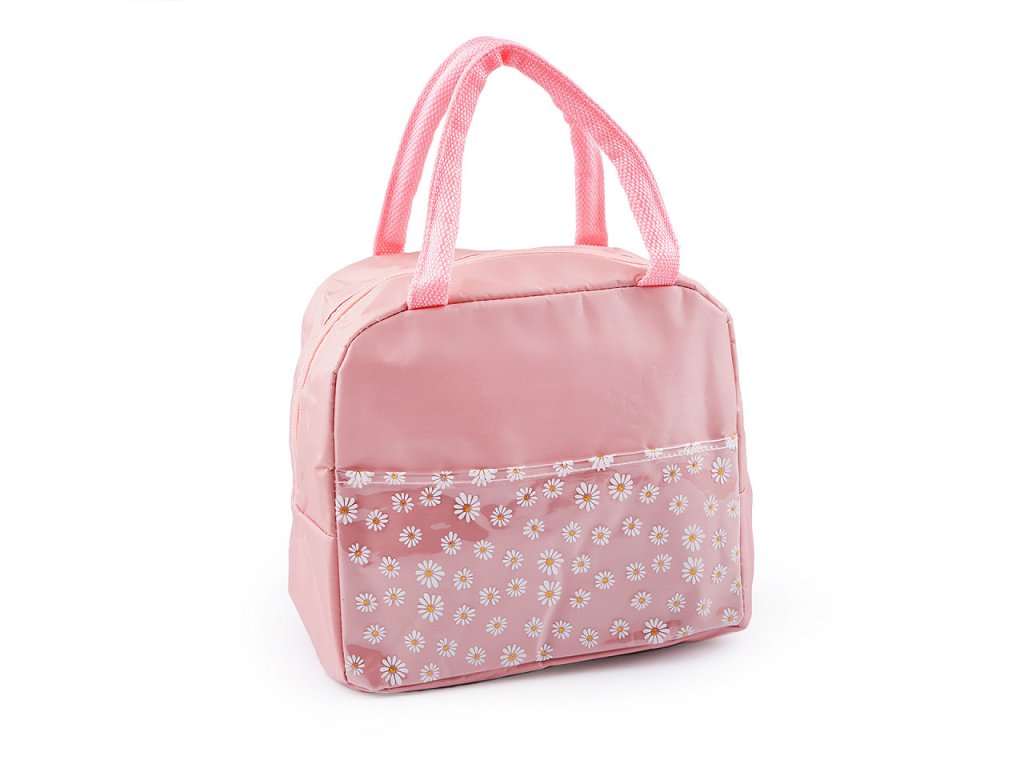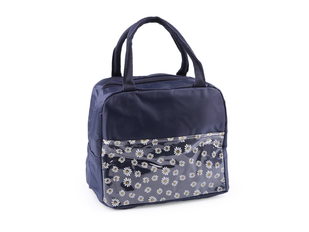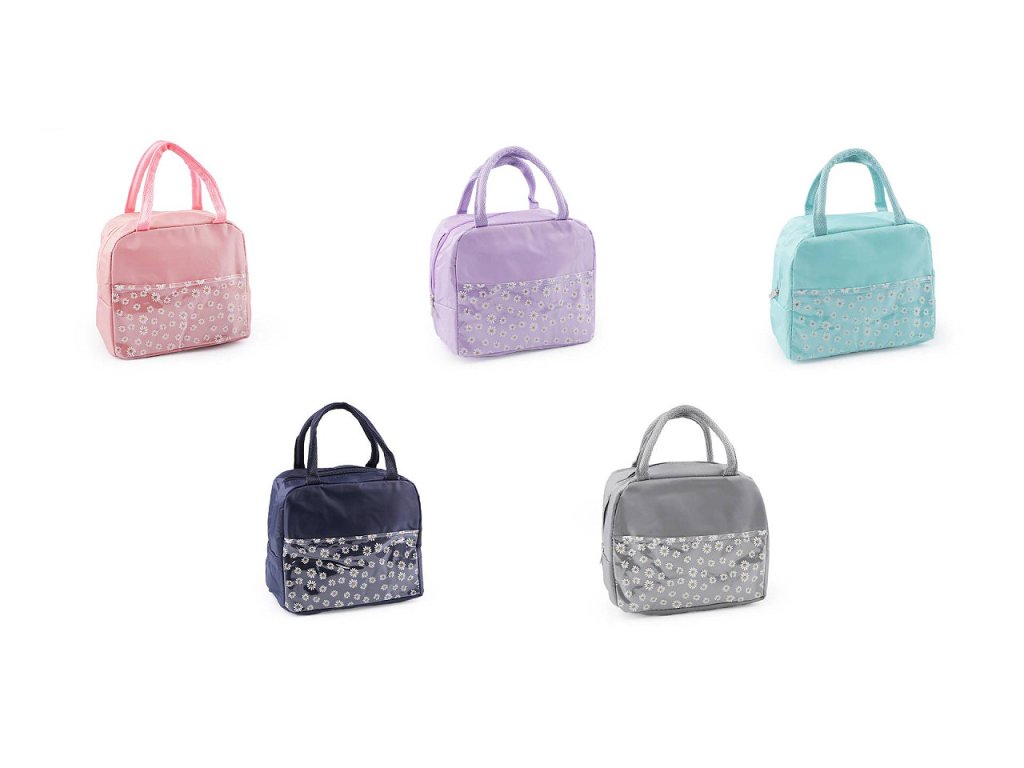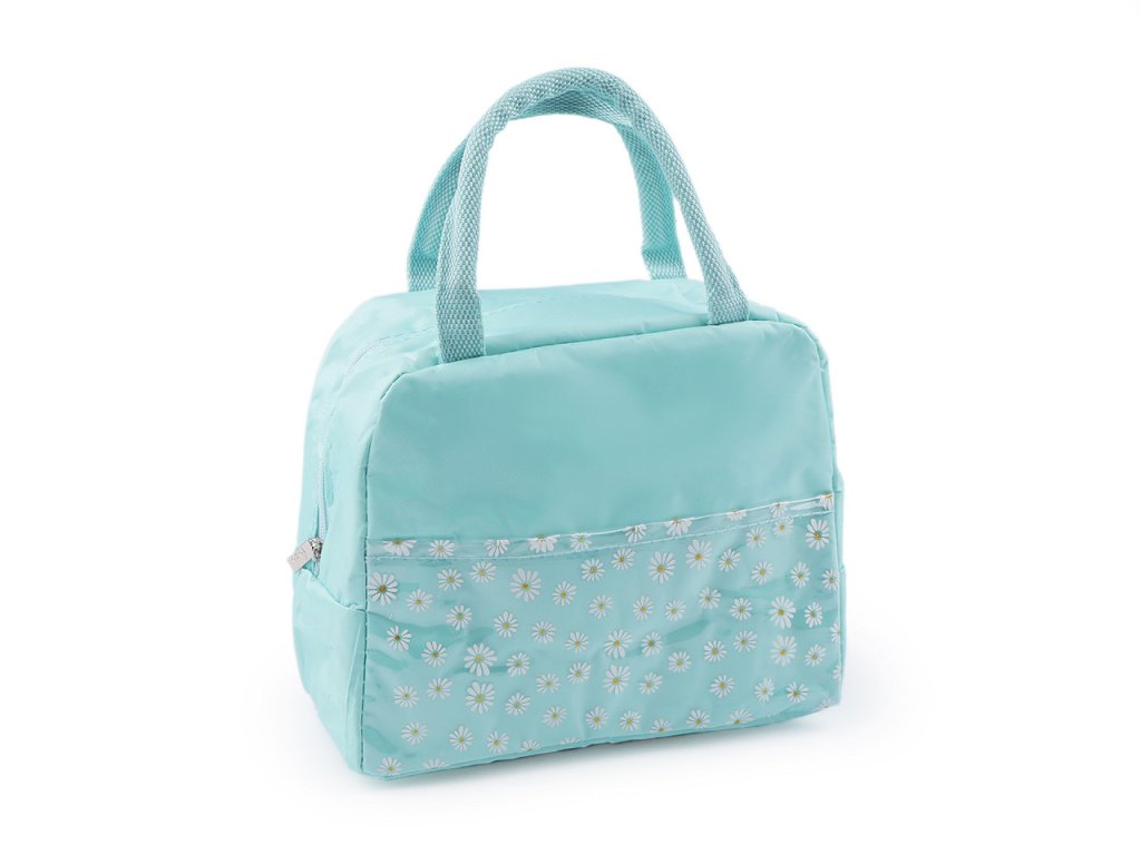 Malá skládací termotaška je skvělým společníkem na výlety, do školy i do práce. Uchovává potraviny po určitou dobu při stejné teplotě. Na přední straně má transparentní plochou kapsu s potiskem květů. Ve středu jsou květy ozdobené třpytivými glitry. V hlavním úložném prostoru je izolační vrstva, která je omyvatelná. Díky širokému dnu má dobrou stabilitu. Zapíná se na zip, nahoře má ucha na pohodlné přenášení.