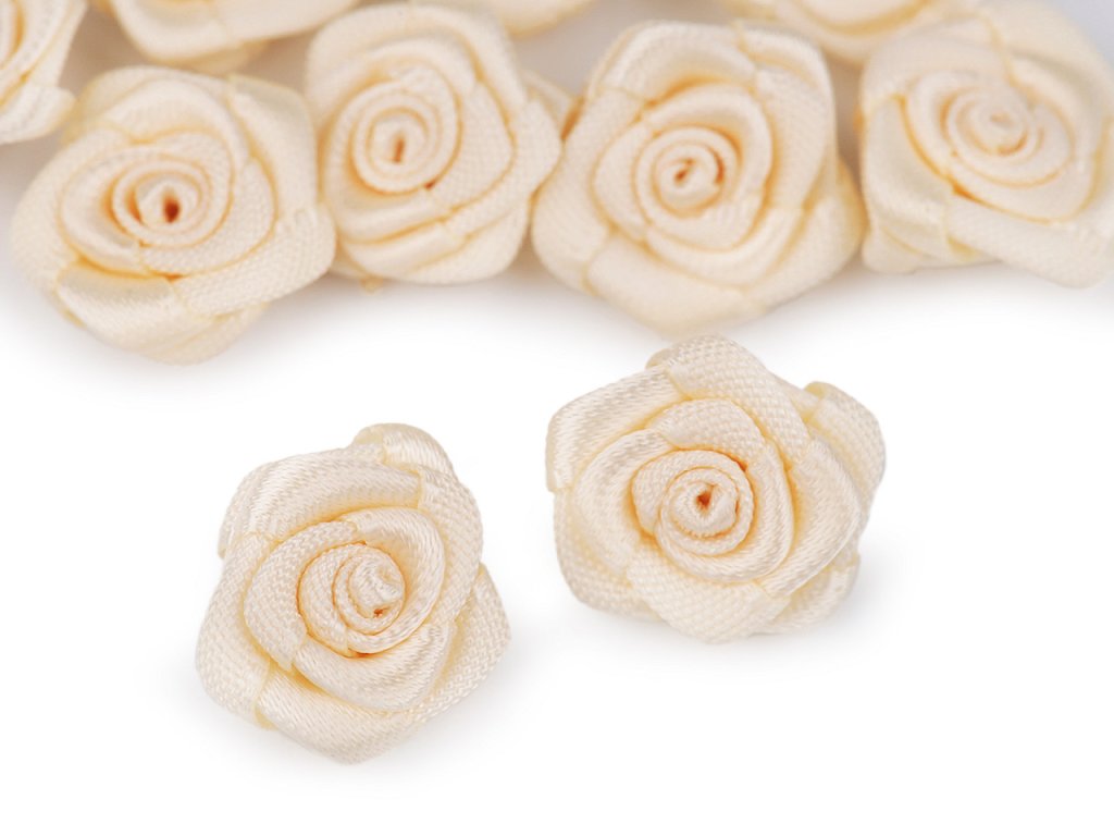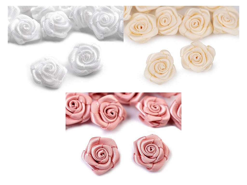 Precizně skládané textilní růžičky jsou zpracované v té nejlepší kvalitě. Využijete je jako textilní dekoraci na oděvy i ve scrapbookingu při zdobení přáníček, pozvánek, foto rámečků apod. Růžičky jsou vhodné také na různé svatební dekorace.