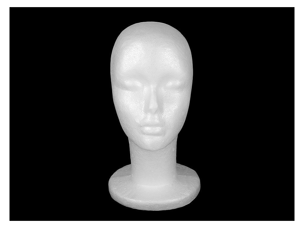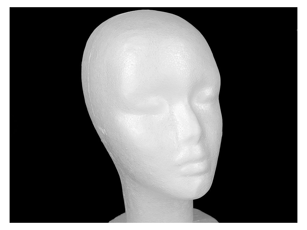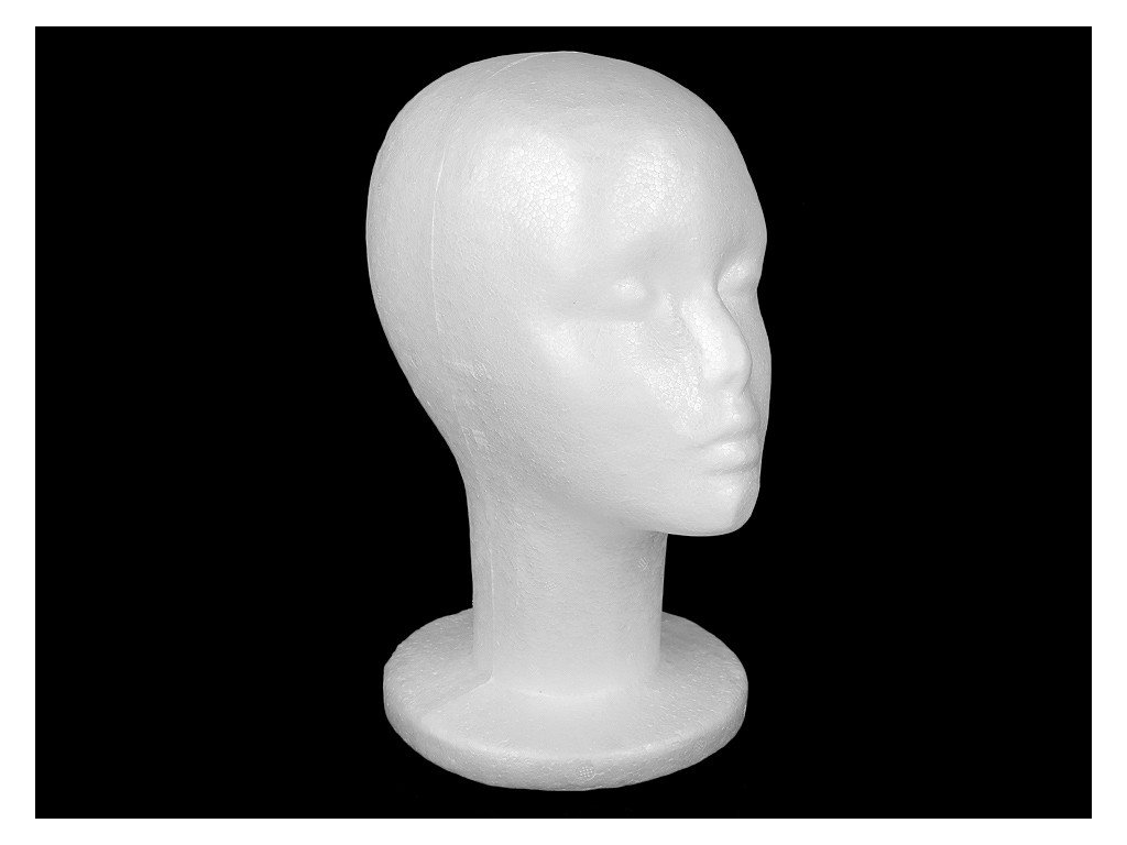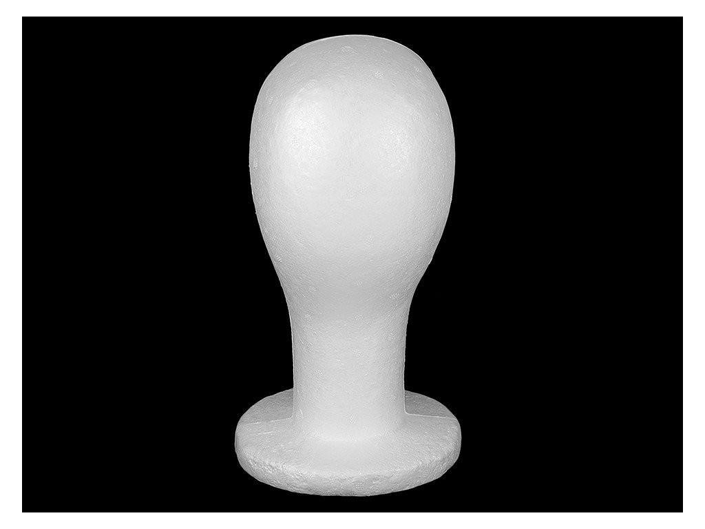 Polystyrenová hlava je vhodná k aranžování paruk, čepic, klobouků nebo šátků. Hlavu využijete převážně na prodejnách.