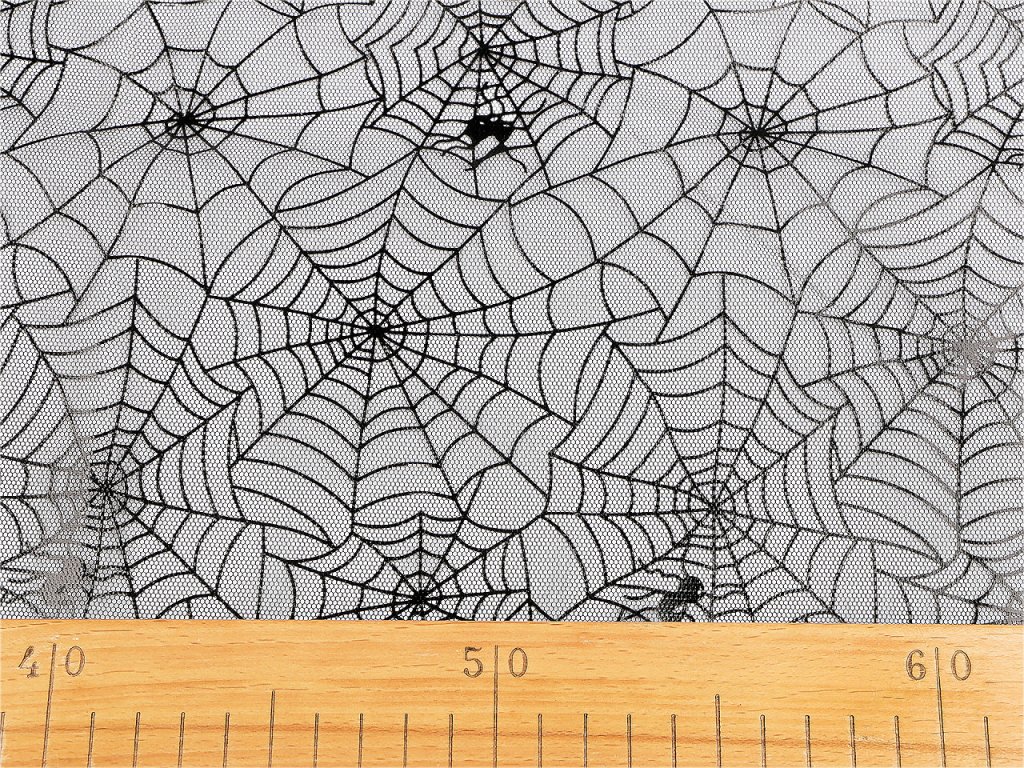Jemný tyl s pavučinovým vzorem využijete na výrobu kostýmů, sukní, halloweenských dekorací apod. Je lehký, průsvitný a splývavý. Potisk je lesklý.