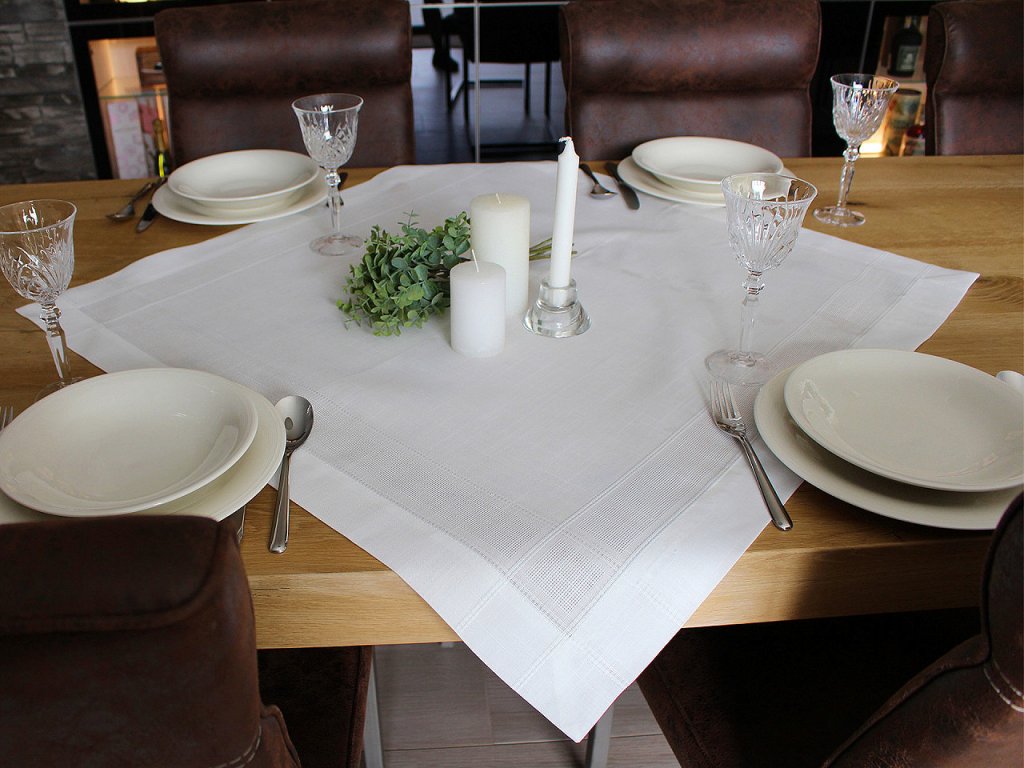 Textilní ubrus je elegantním doplňkem pro každou jídelnu či obývací pokoj. Je ideální volbou pro každodenní použití i slavnostní příležitosti. Skvěle se hodí na sváteční stoly, rodinné oslavy nebo romantické večeře, dá se kombinovat s širokou škálou porcelánu, skla či příborů, a to jak v moderním, tak i tradičním stylu. Díky své univerzálnosti se bude vyjímat i v kavárnách a restauracích.