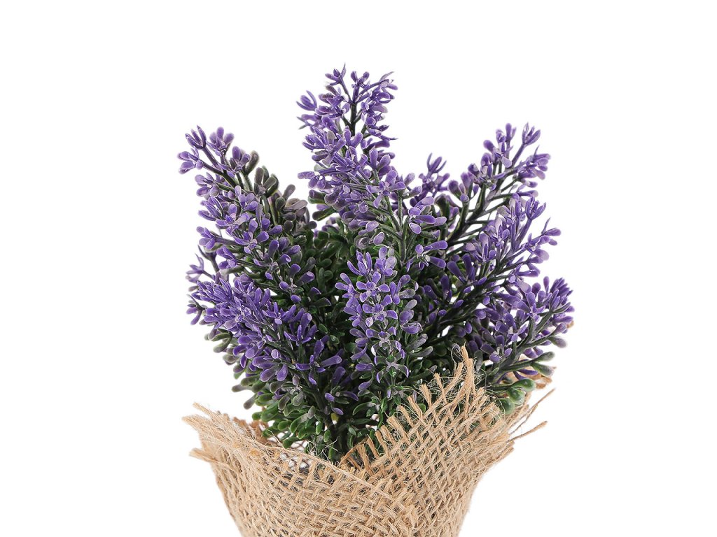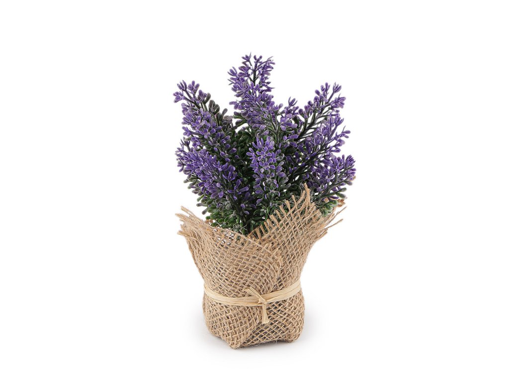 Umělá levandule vnese do interiéru svěží závan Středozemí. Jutový obal podtrhuje její rustikální vzhled, který se hodí do moderních i tradičních prostor. Můžete ji umístit do truhlíků, malých květináčů, ale také ji zakomponovat do různých aranžmá.