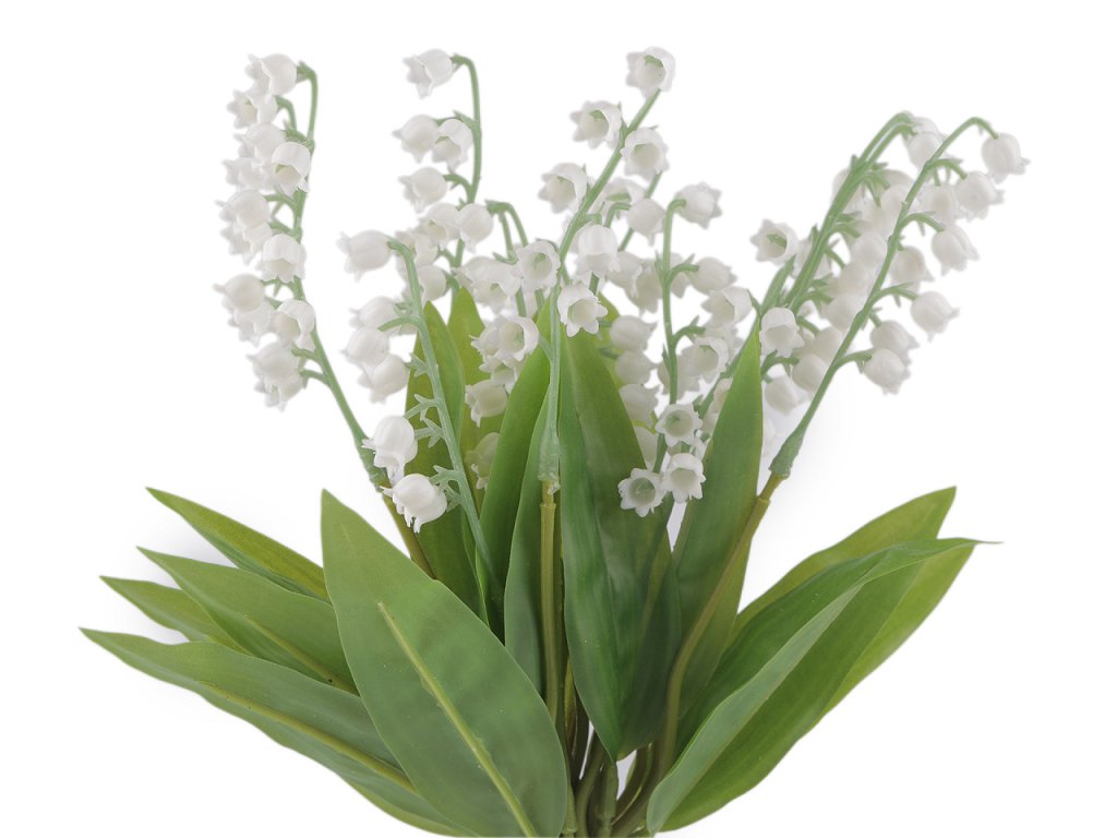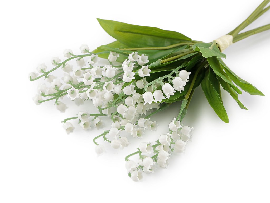 Svazek umělých konvalinek s jemnými kvítky a svěže zelenými listy vynikne ve váze, ale také v květinových vazbách a jarních nebo svatebních aranžmá. Uvnitř stonků je drát, který se dá tvarovat.