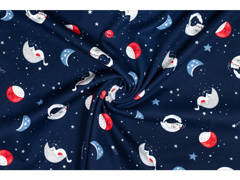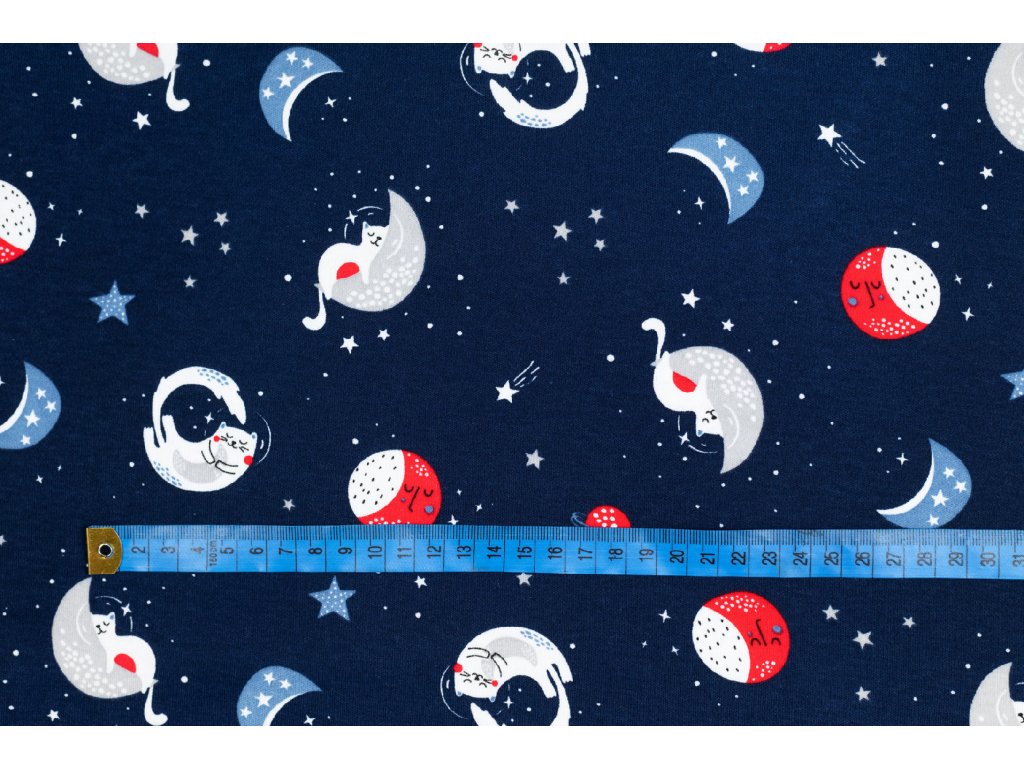 Bavlněný oboulíc měsíc a hvězdy na tmavě modré