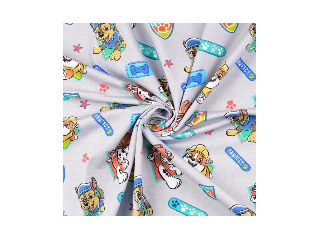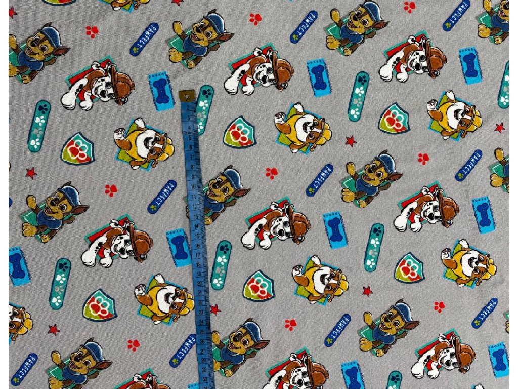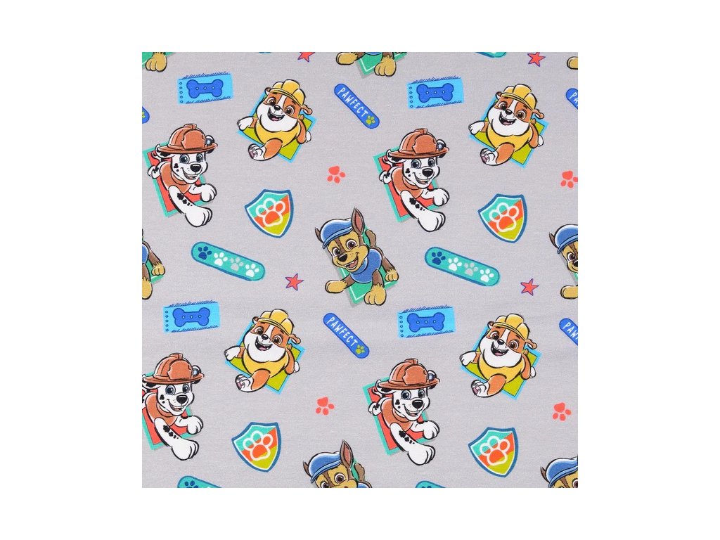 Bavlněný úplet tlapková patrola na šedé