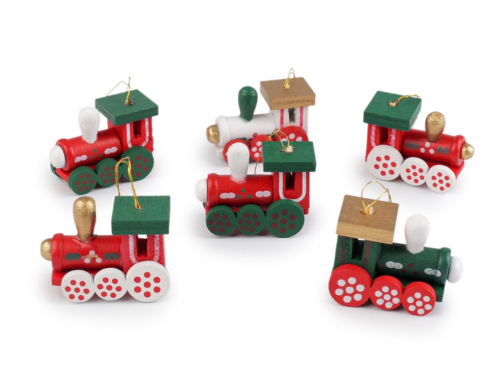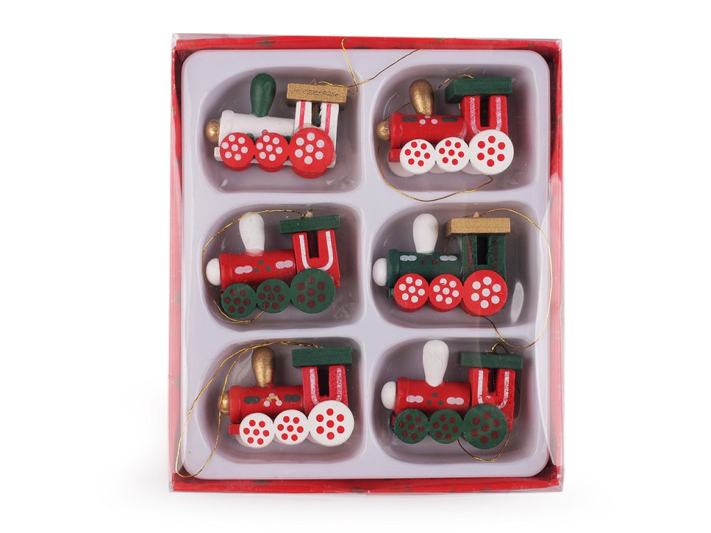 Sada dřevěných mini vláčků je vhodná k dozdobení vánočních stromečků, větviček ve váze i věnců. Barevná kombinace v tradičním stylu jim dodává nostalgický nádech a evokuje vzpomínky na dávné časy.