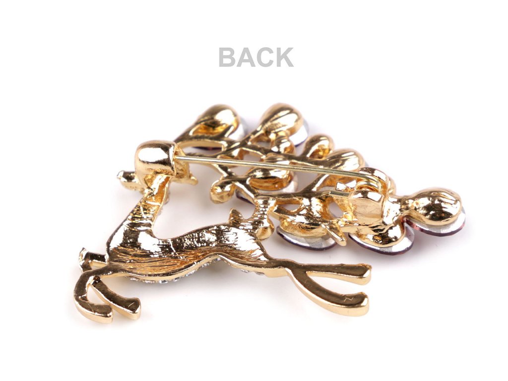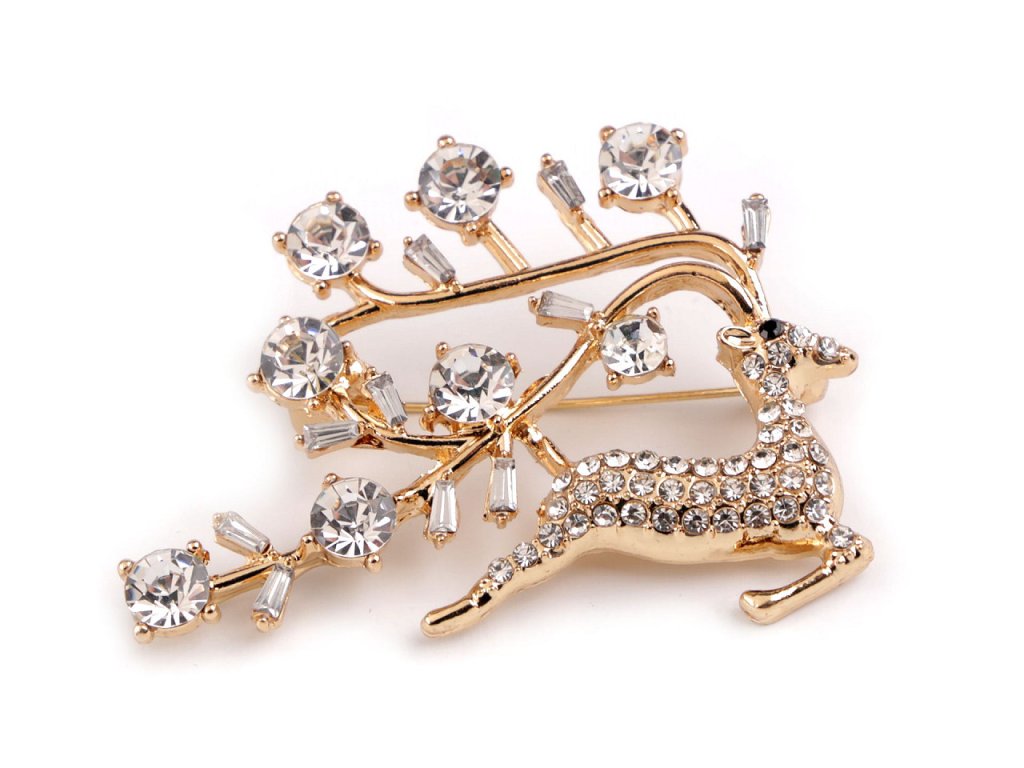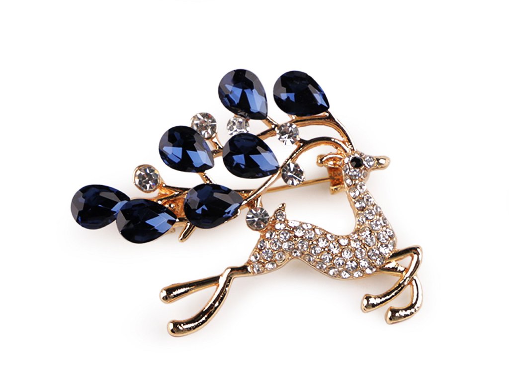 Elegantní brož s jelenem bude perfektním doplňkem vašeho oděvu. Díky broušeným kamínkům, které se třpytí, skvěle dozdobí košile, saka, svetry, kabelky či čepice. Hodí se i na ozdobné sepnutí šátku.