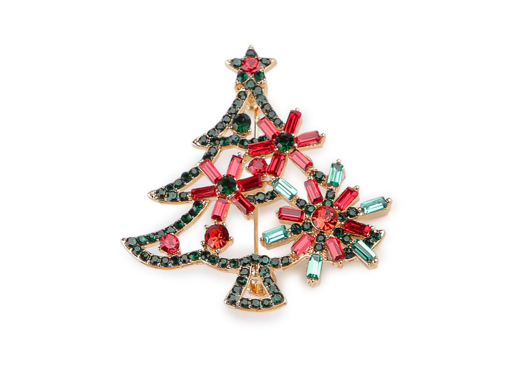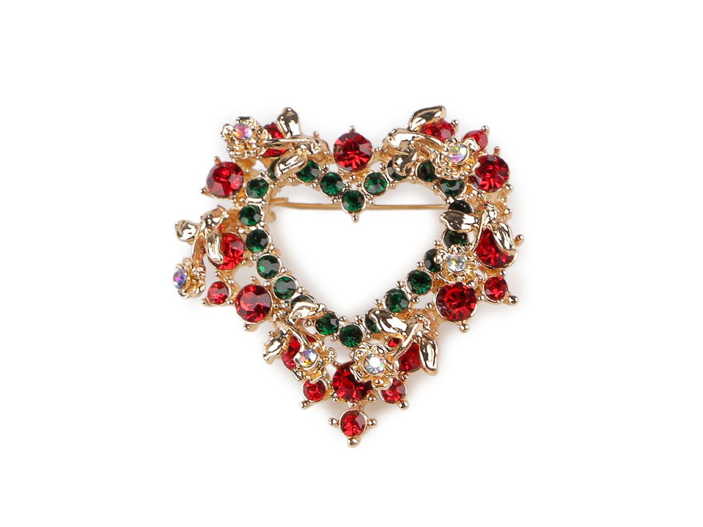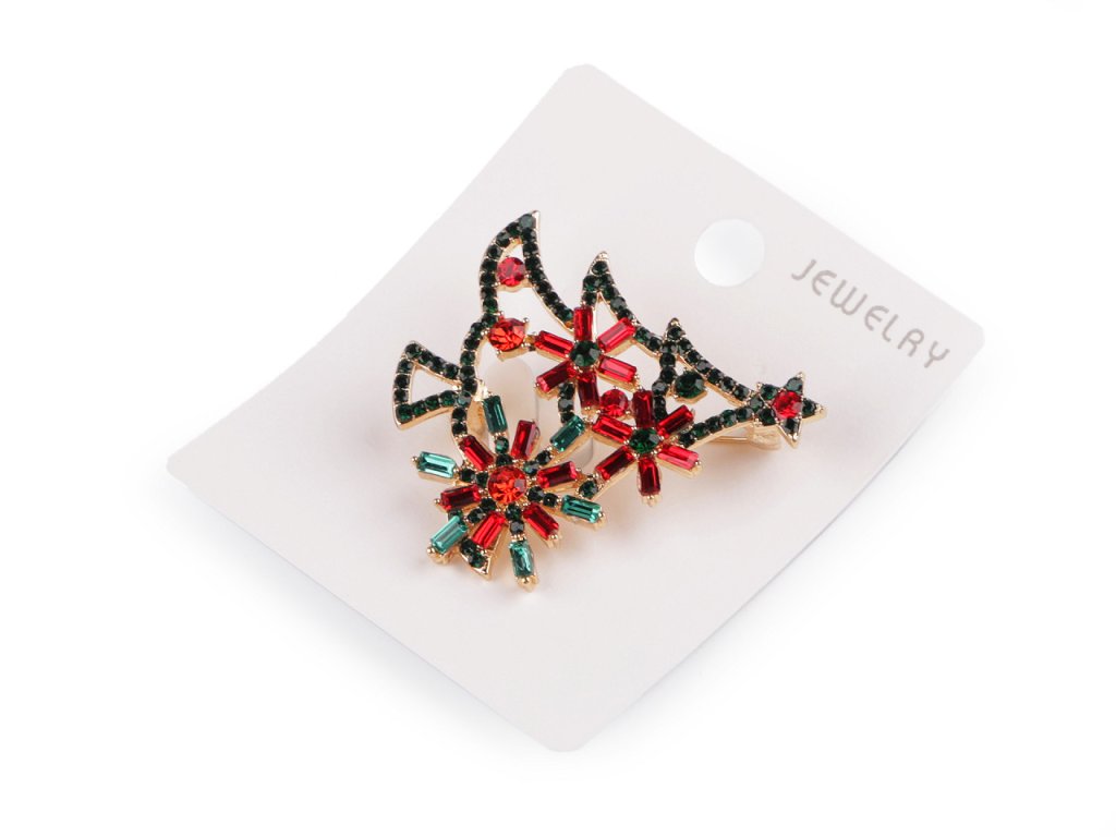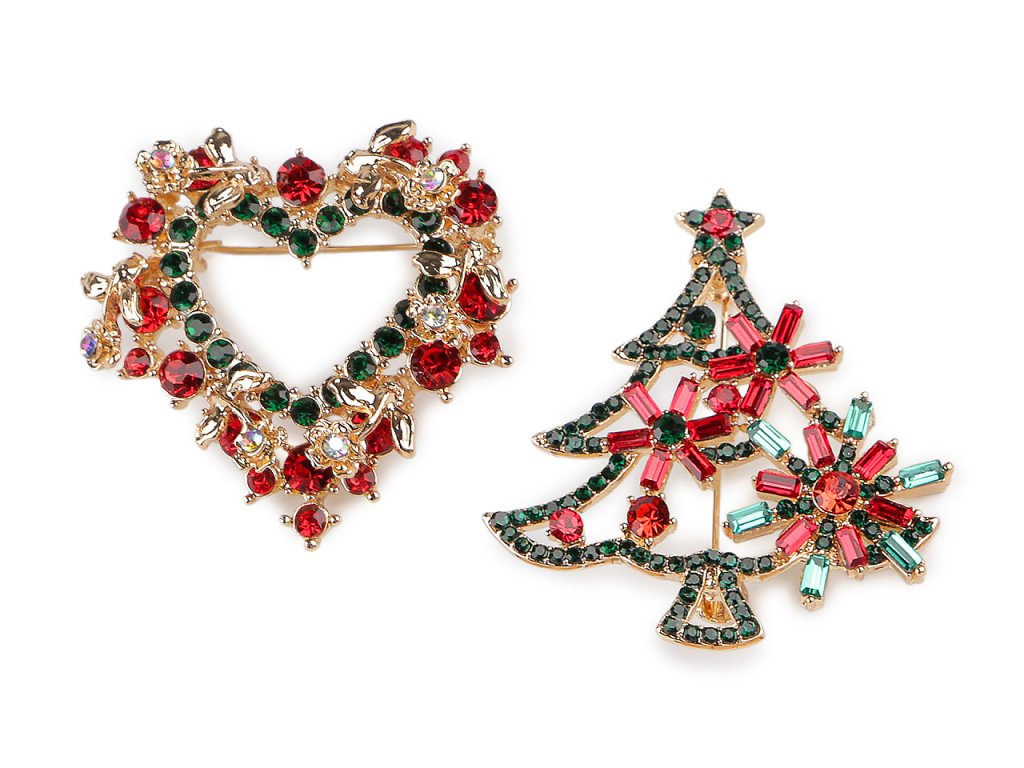 Brož s broušenými kamínky vánoční stromeček, srdce