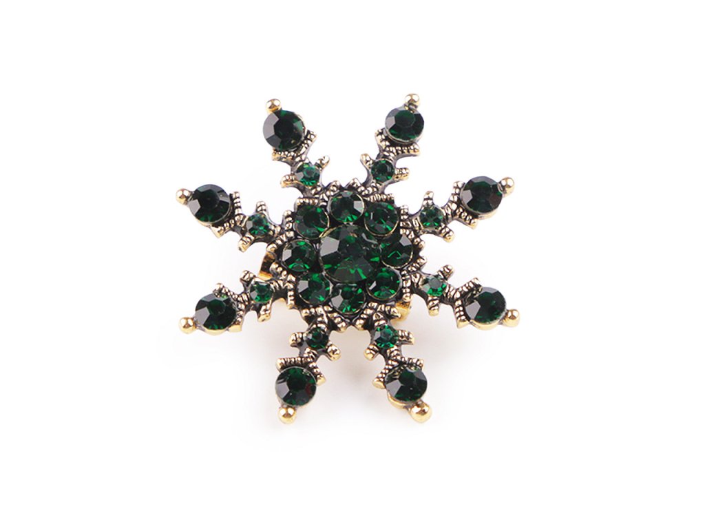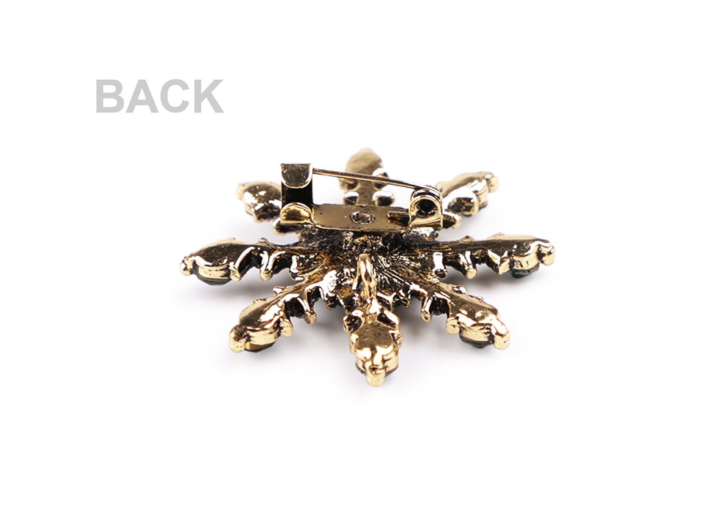 Elegantní brož s vločkou je osázená kamínky, které mají díky broušených plošek zajímavé světelné odlesky. Na zadní straně je brožový špendlík.