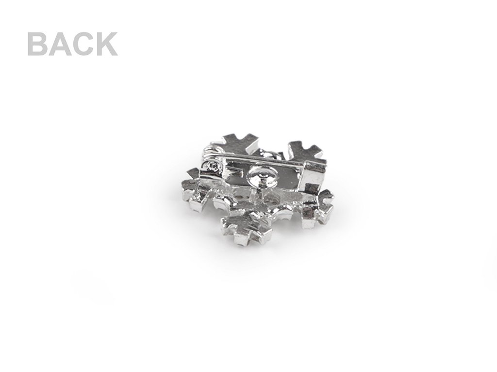 Elegantní mini brož s vločkou zaujme na první pohled svým jemným designem. Je osázená broušenými kamínky, které mají díky broušených plošek zajímavé světelné odlesky. Na zadní straně je brožový špendlík.