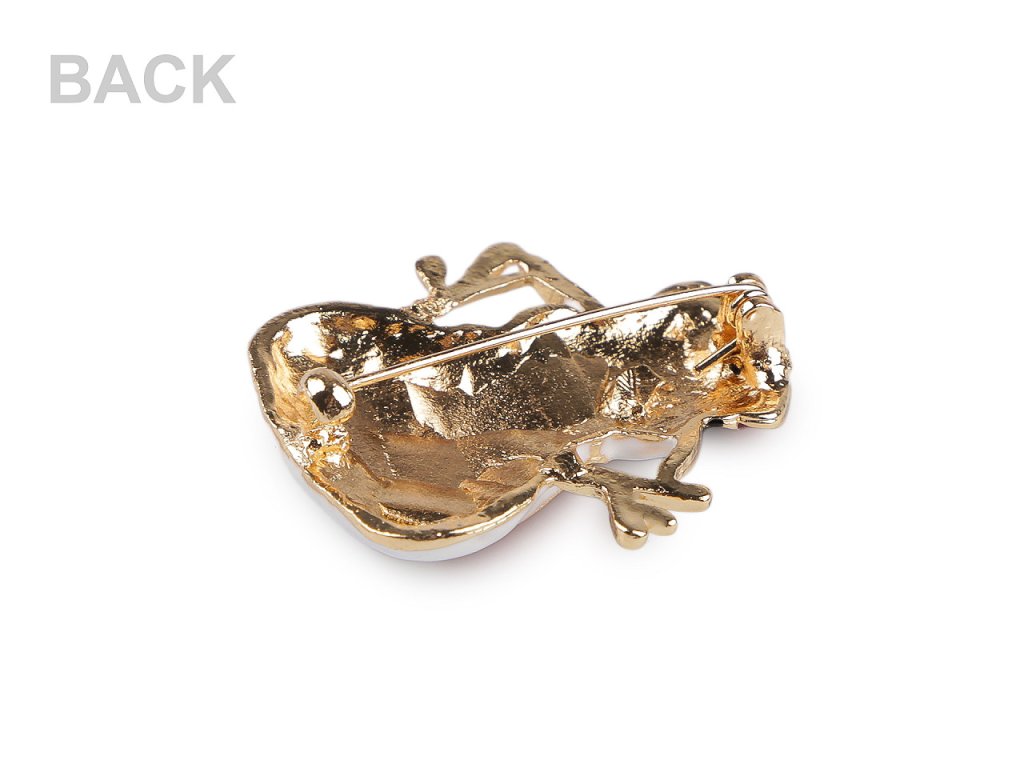 Brož má vzadu brožový špendlík. Je na plastové kartě, která se dá zavěsit na prodejní stojany.