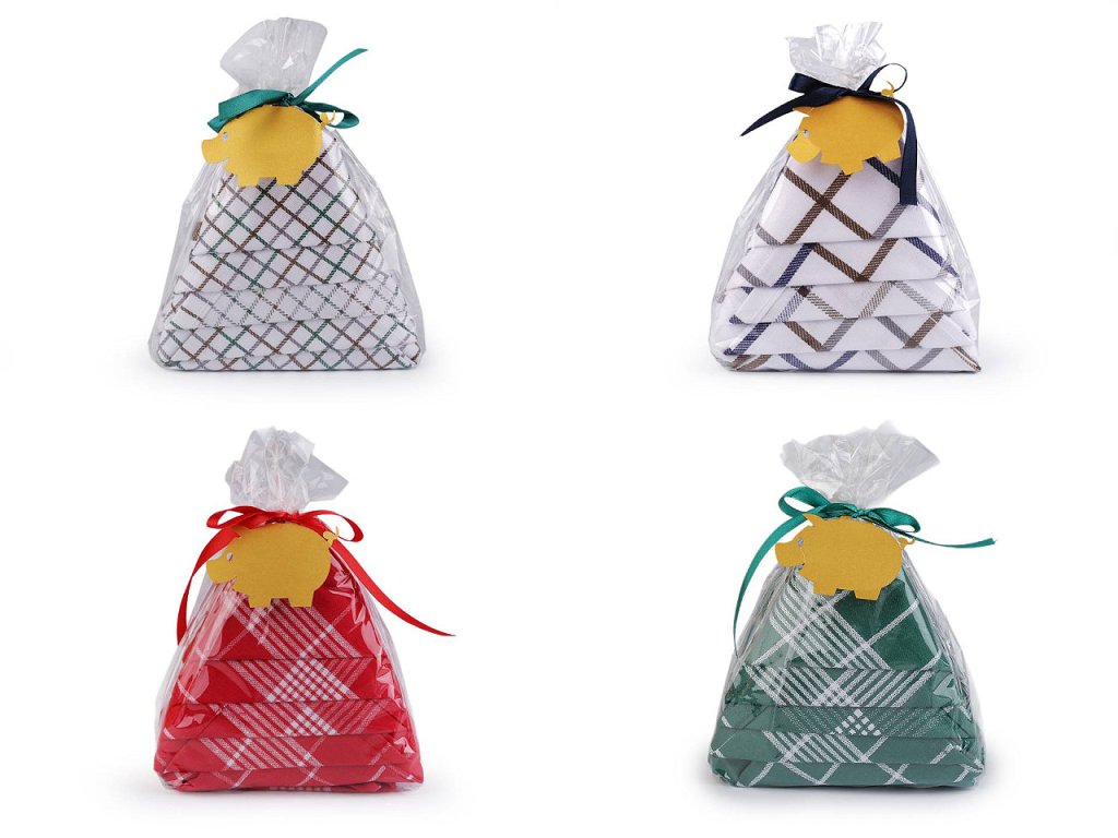 Kvalitní utěrky ve vánočním balení jsou vyrobené z egyptské bavlny, která je považována za nejkvalitnější bavlnu na světě. Utěrky jsou extrémně savé, stálobarevné, hebké, bez žmolků a mají dlouhou životnost. Za poutko je můžete pohodlně zavěsit. Jsou zabalené v transparentním sáčku do tvaru vánočního stromečku, jsou ozdobené mašlí s vánoční visačkou. Díky vánočnímu balení mohou být krásným a praktickým dárkem pod stromeček.